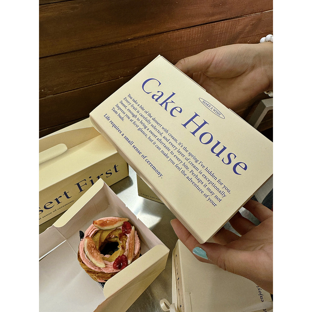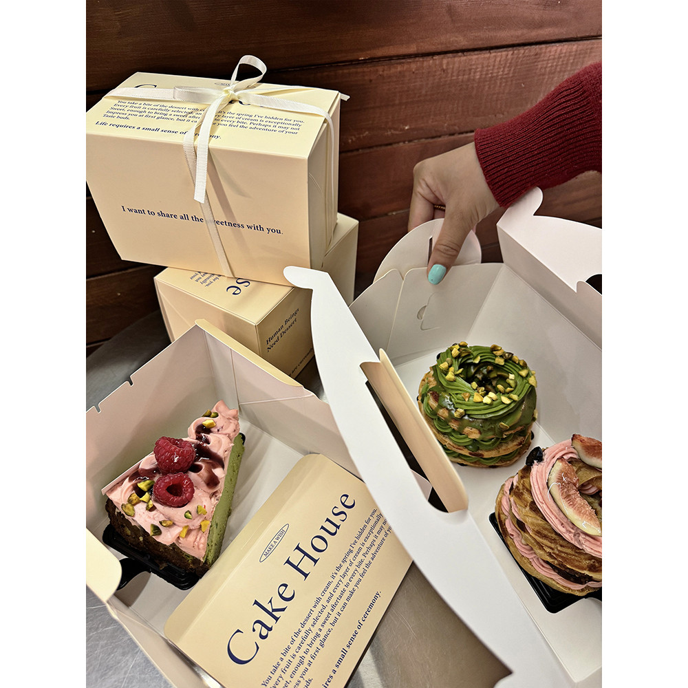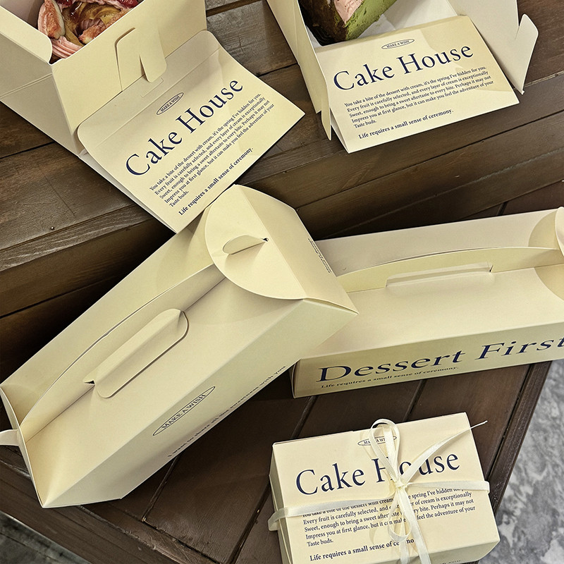 กล่องบรรจุภัณฑ์ขนมครีมขนมเค้กม้วนกล่องกระดาษแบบพกพามูสเค้กขนมกล่องบรรจุภัณฑ์สามารถปรับแต่งได้