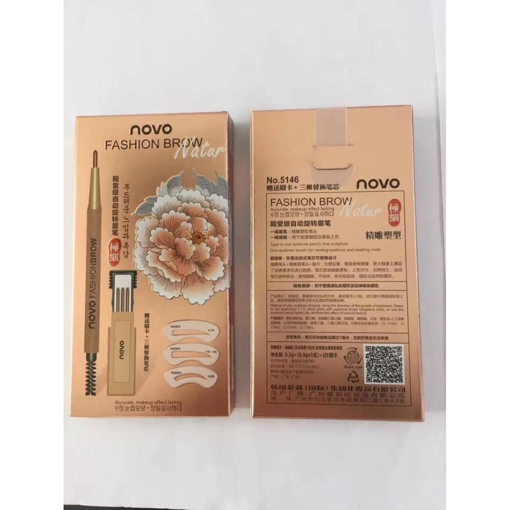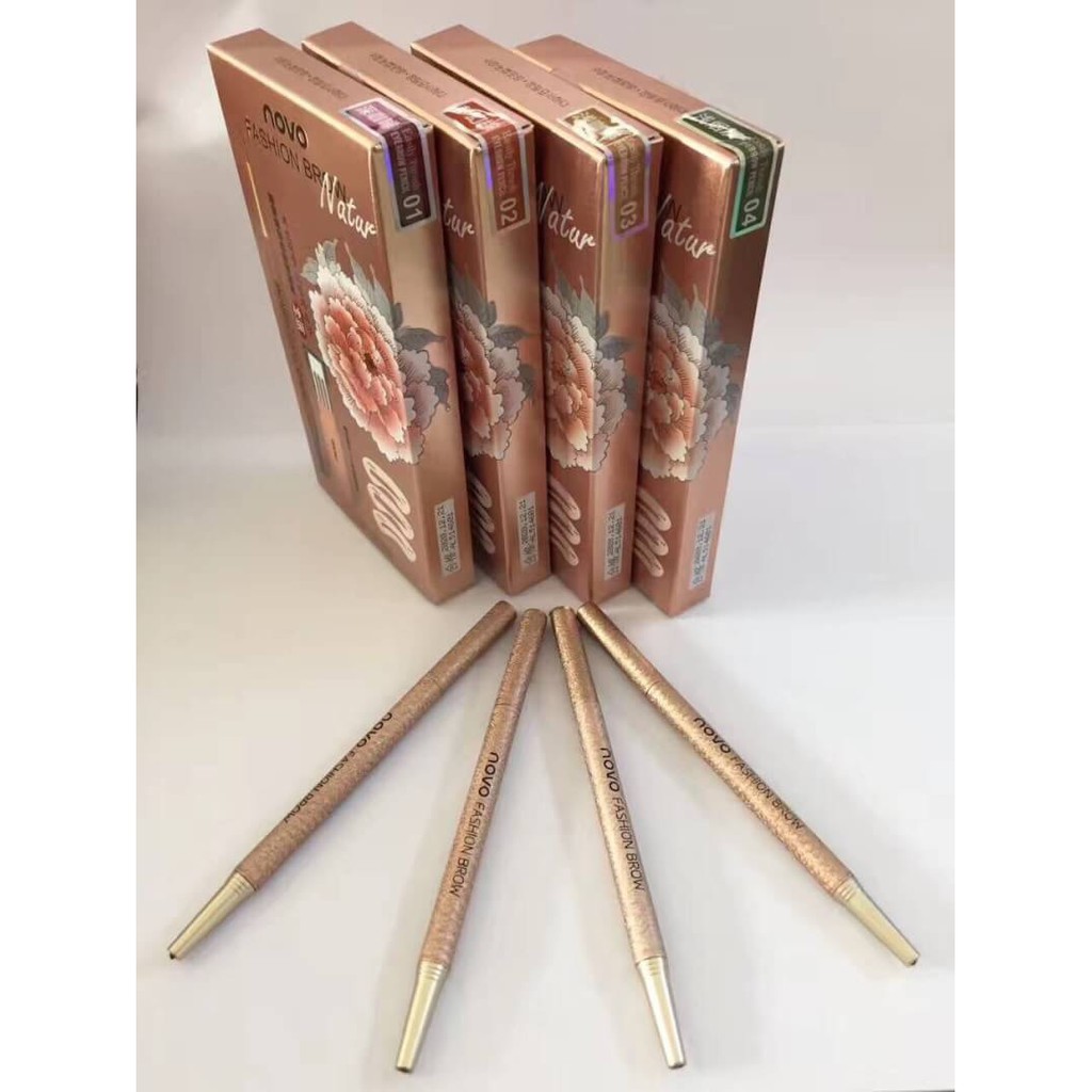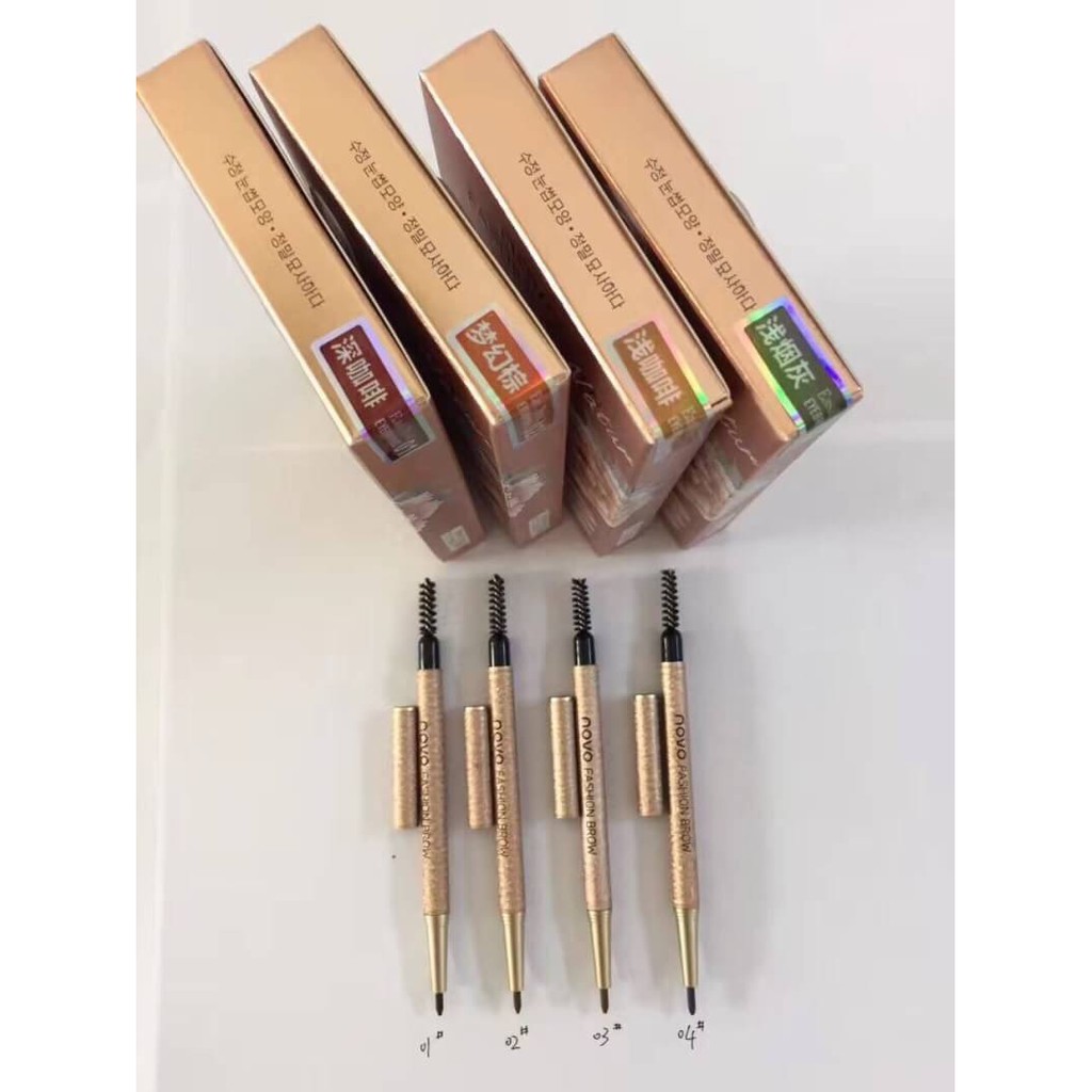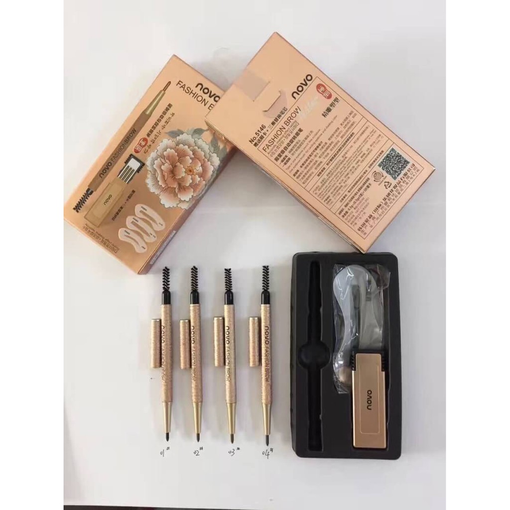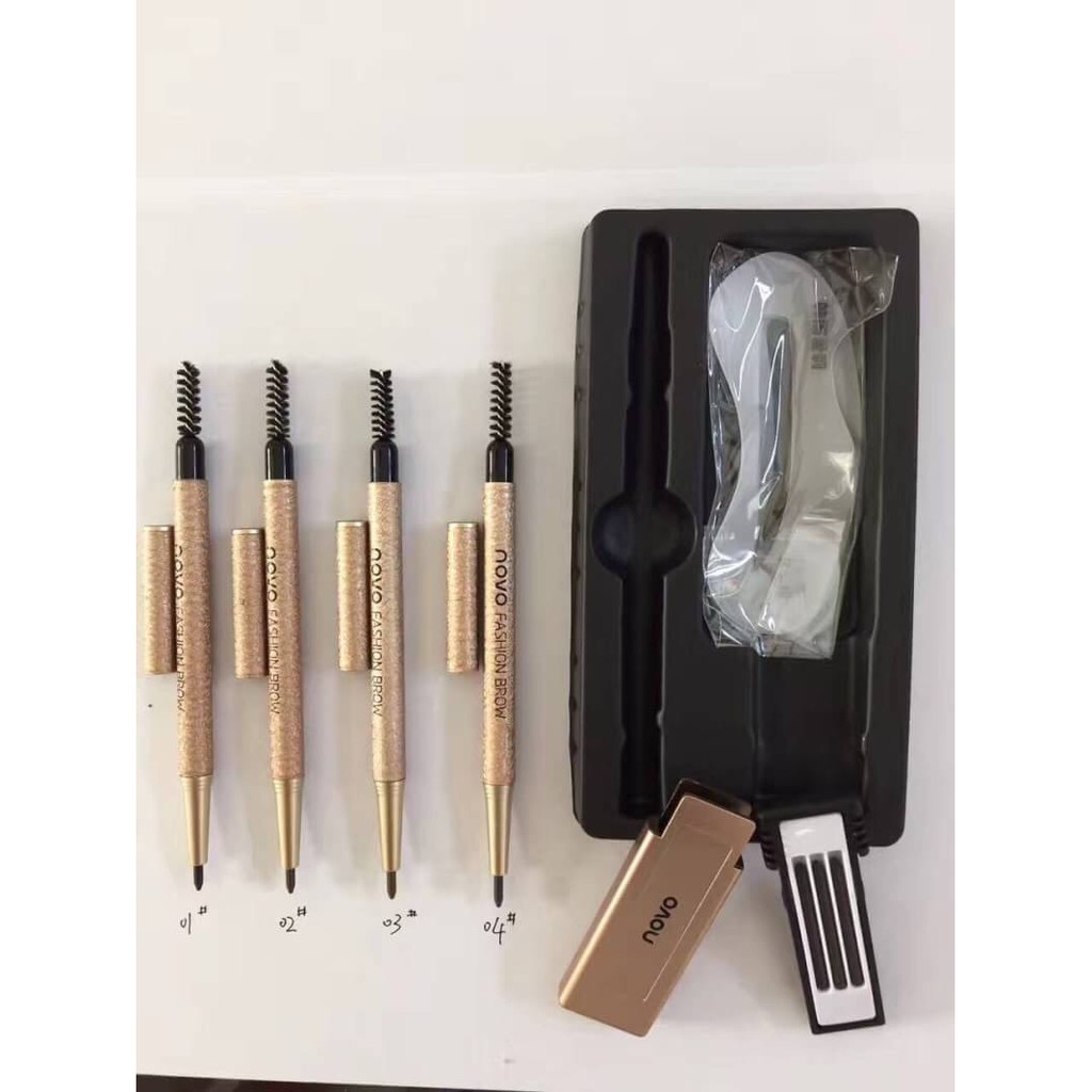 (มีส่งด่วน)Novo ดินสอเขียนคิ้ว พร้อมไส้ดินสอเปลี่ยน 3 แท่ง + บล็อกคิ้ว 3 แบบ