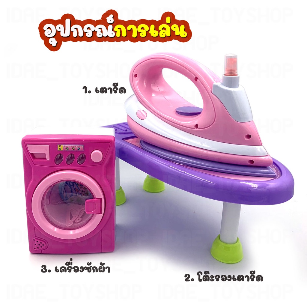 [พร้อมส่ง] เตารีดของเล่นมีไฟเครื่องซักผ้าของเล่น