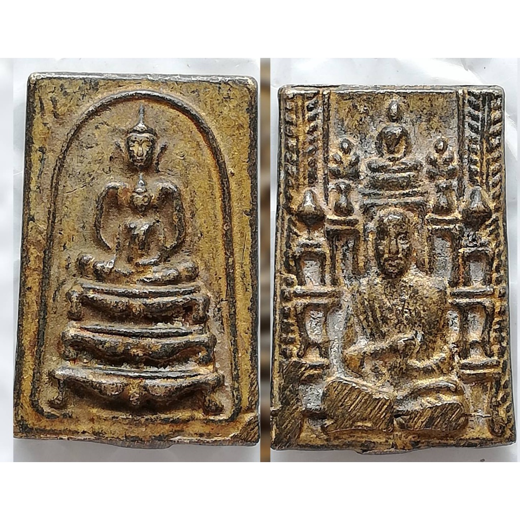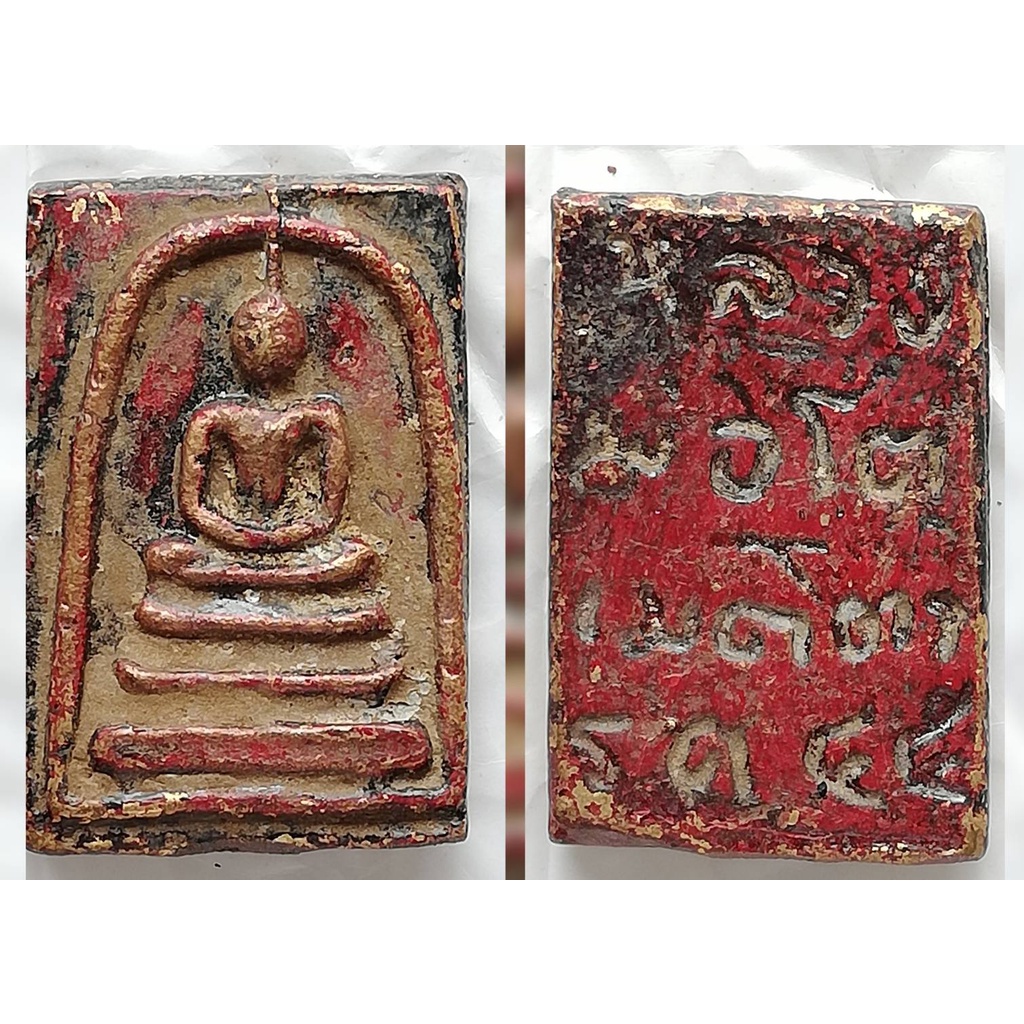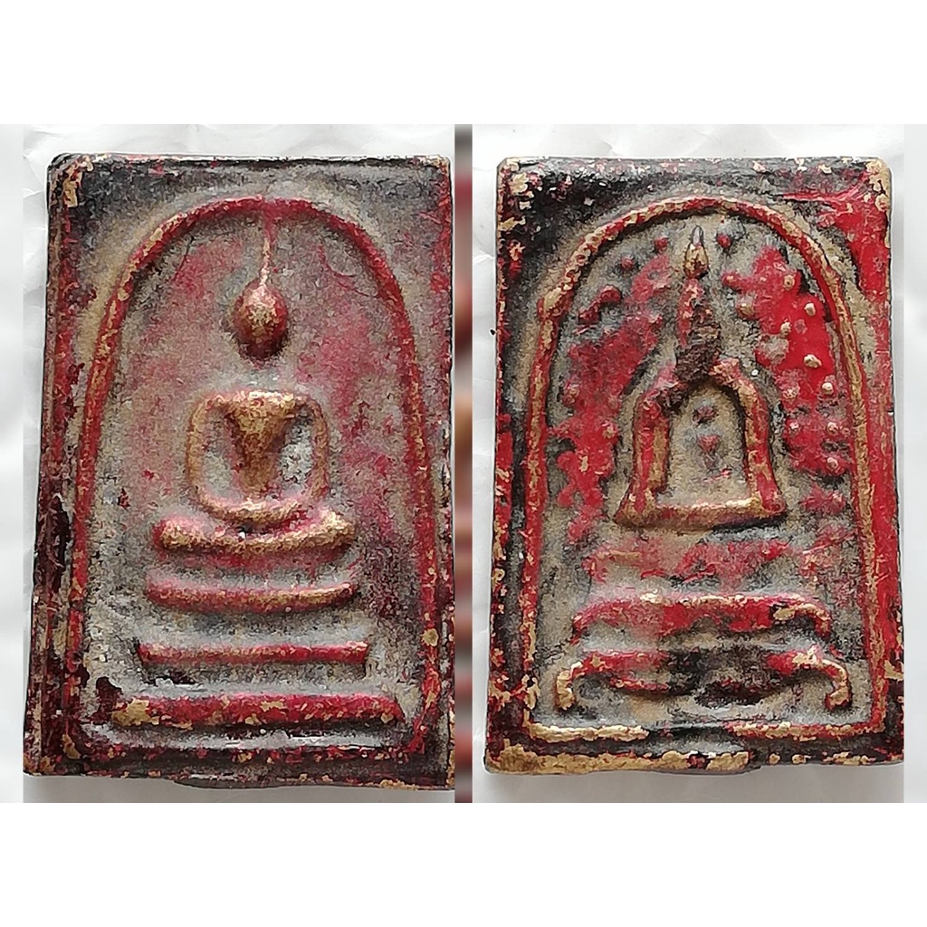พระสมเด็จวัดระฆัง 2 หน้าลงรักแดงต่างพิมพ์ เนื้อโลหะเก่า ชุด2