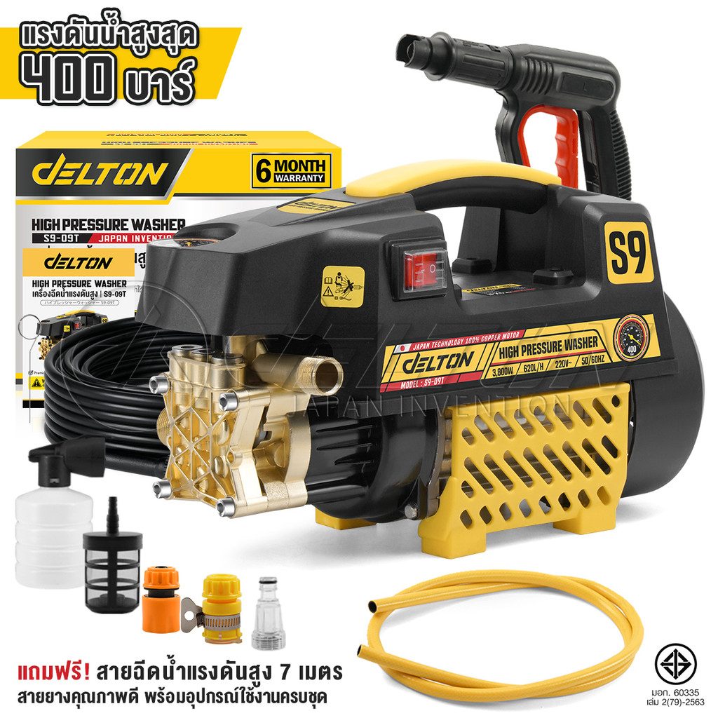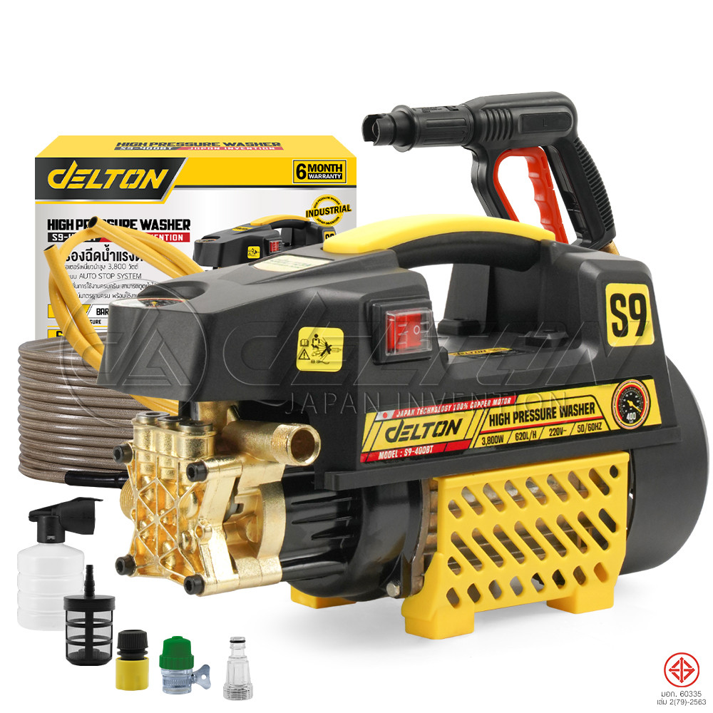 DELTON เครื่องฉีดน้ำแรงดันสูง 400 บาร์ 3800 วัตต์ มอเตอร์เหนี่ยวนำดูดน้ำได้ด้วยตัวเอง auto stop รุ่น S9-400BT (S9-09T)