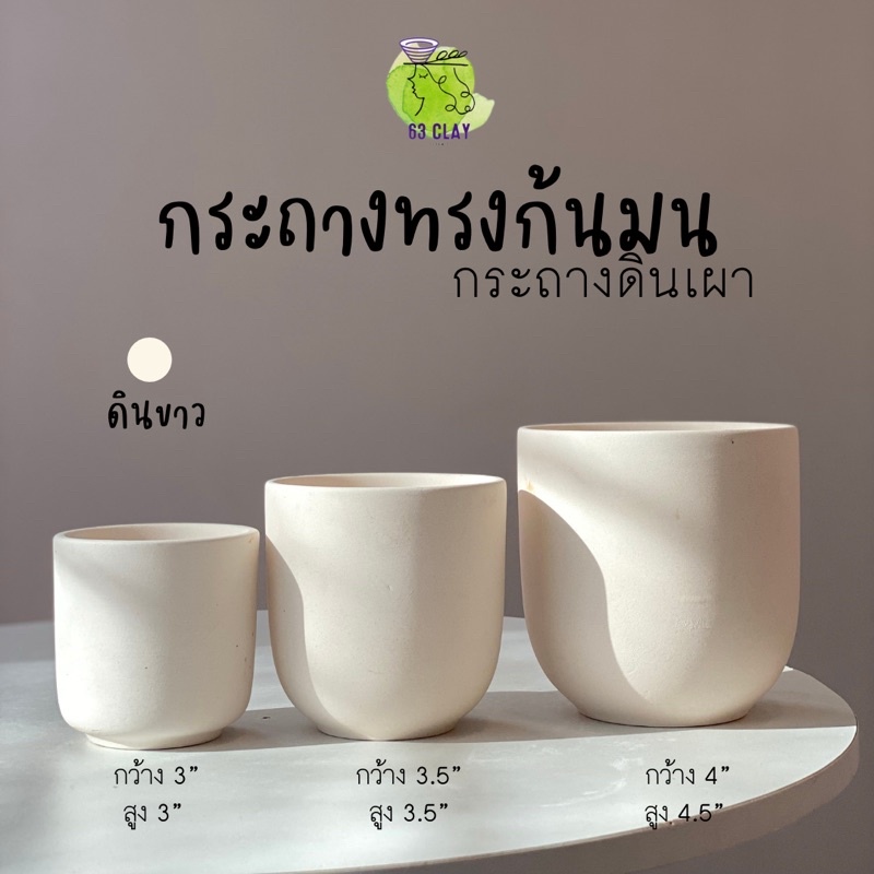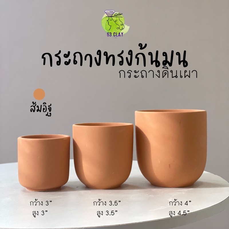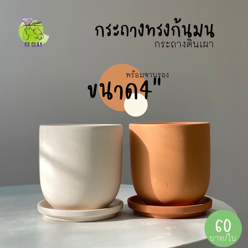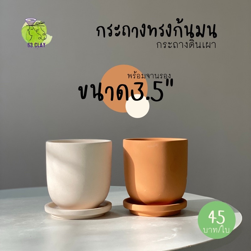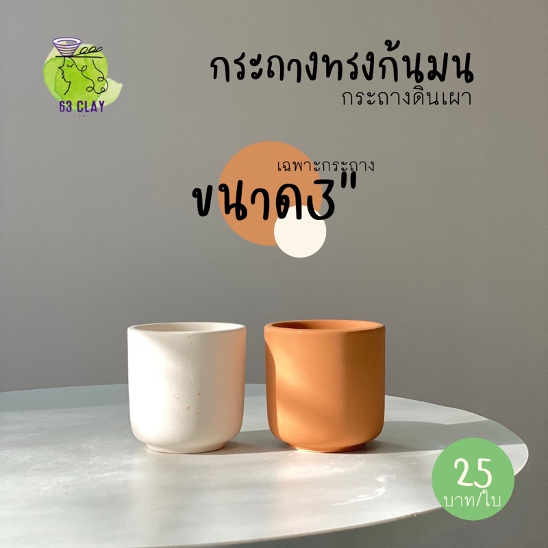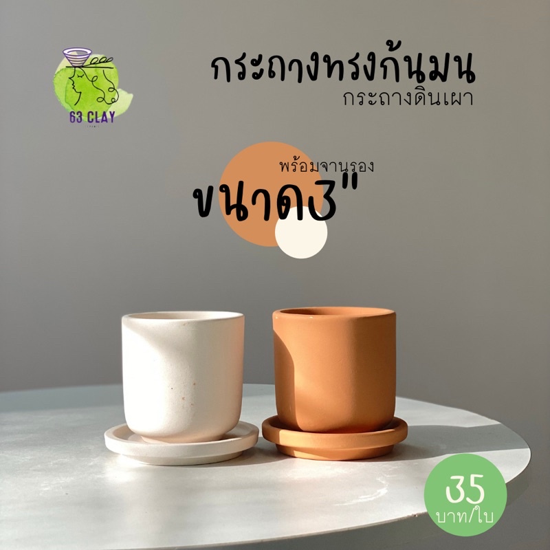 กระถางดินเผา กระถางแคตตัส เนื้อเนียนละเอียด ทรงเรียบตรงขนาด3” และ 4”