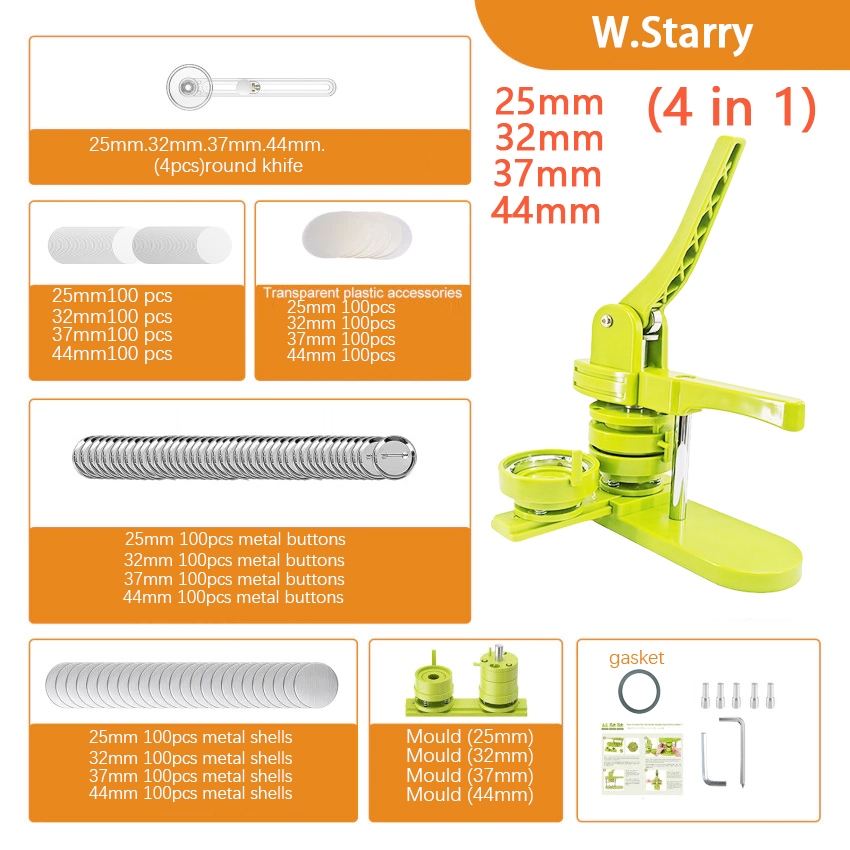 W.Starry 5 อิน 1 (25+32+37+44+58 มม.) เครื่องทำเข็มกลัด เครื่องผลิตปุ่มติดตั้งฟรี ชุดเครื่องทำปุ่ม ครื่องกดตรา pin maker