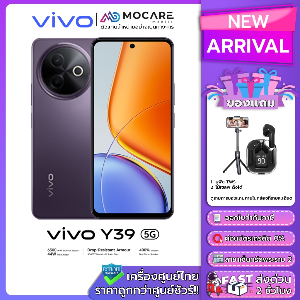 [ลดเพิ่มโค้ดคุ้ม] Vivo Y39 5G โทรศัพท์มือถือ ประกันศูนย์ไทย ส่งด่วน
