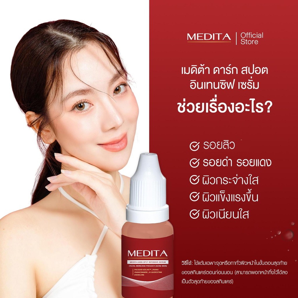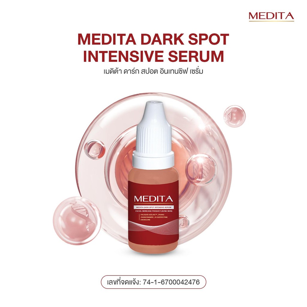 [ 1 แถม 1 ] เซตคู่ MEDITA DARK SPOT INTENSIVE SERUM 10 ml+MEDITA ANTI-ACNE & WHITENING CALMING MOISTURE GEL 10 g.