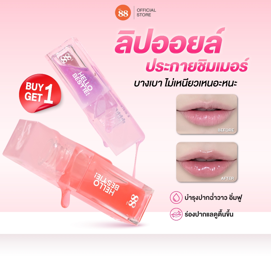 [1แถม1] ลิปออยล์ชิมเมอร์ Ver.88 Twinny ร่องปากอิ่มฟู ฉ่ำวาว กลิ่นฟรุตตี้ 5g