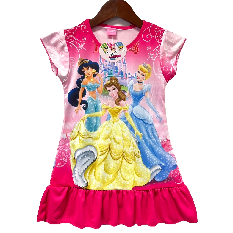 ชุดกระโปงเด็กผู้หญิง ลายเจ้าหญิง ผ้ามันผ้าไมโคเกรดพรีเมี่ยม PM003