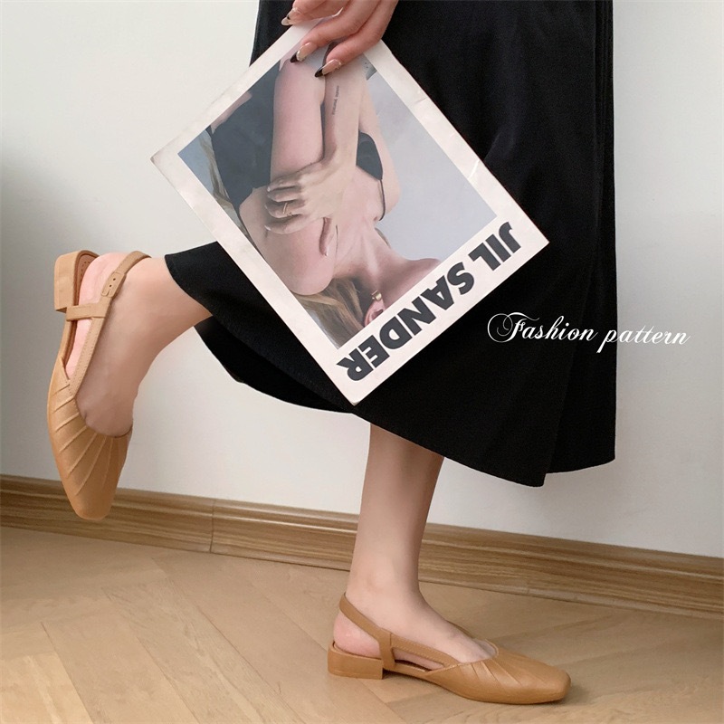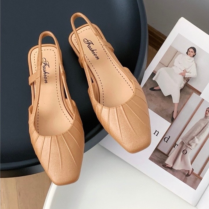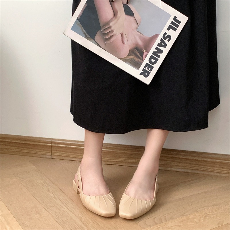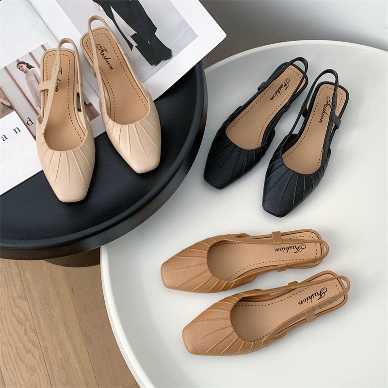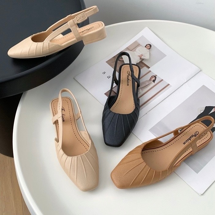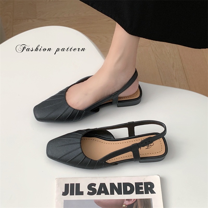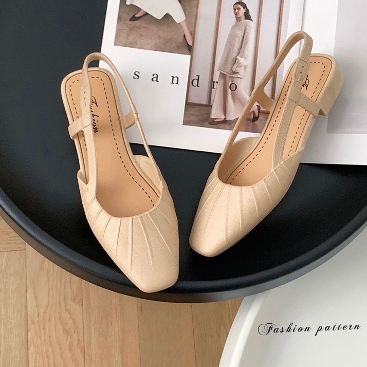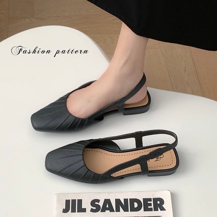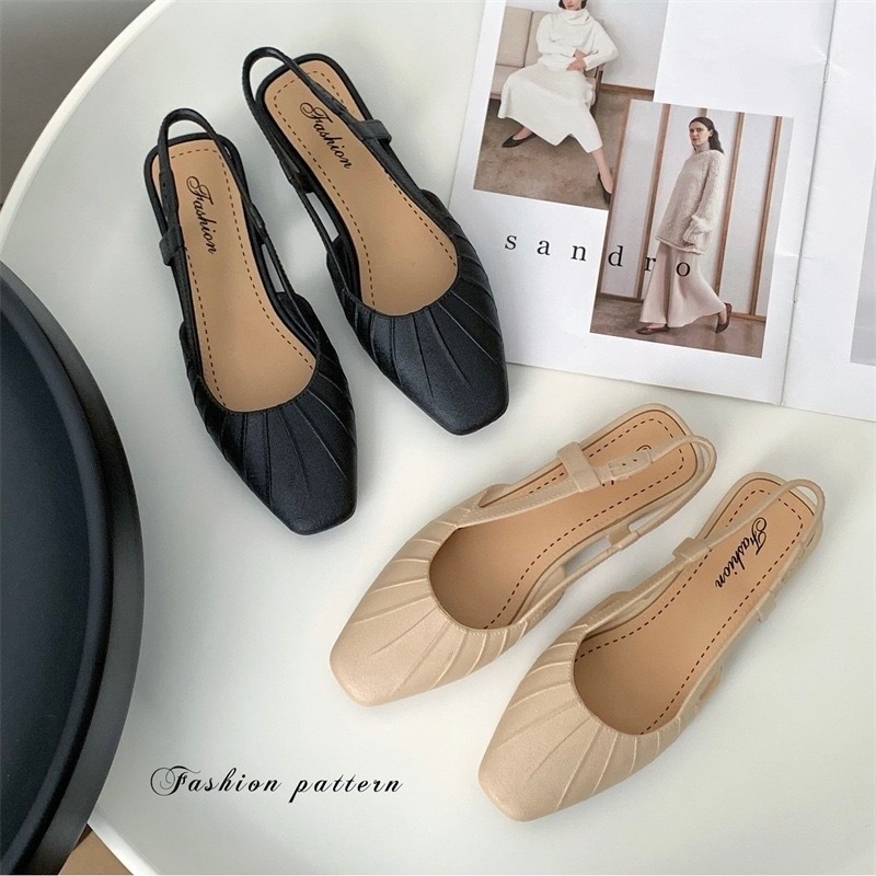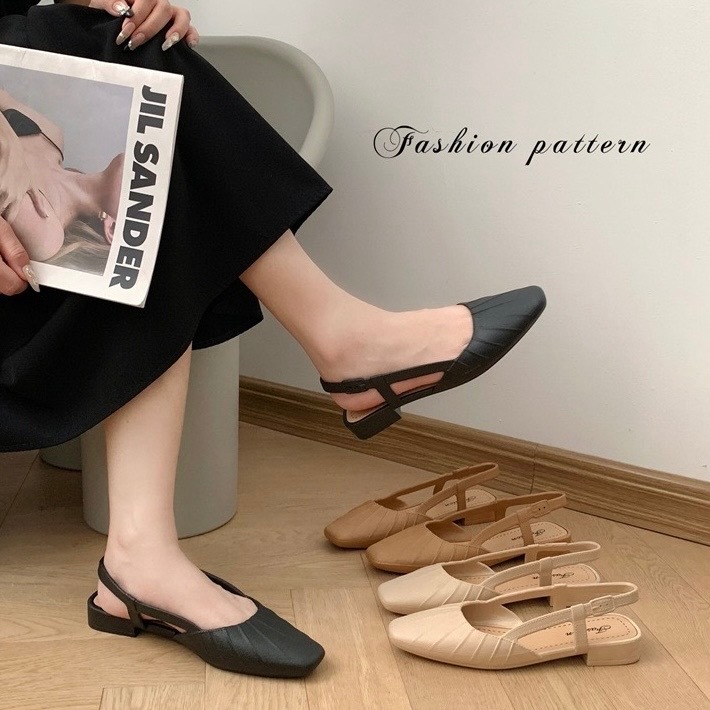 พร้อมส่งจากไทย 【9068】รองเท้าคัชชูรัดส้นเสริมส้นสายยืดได้นิดหน่อยสีพื้นปลายมน