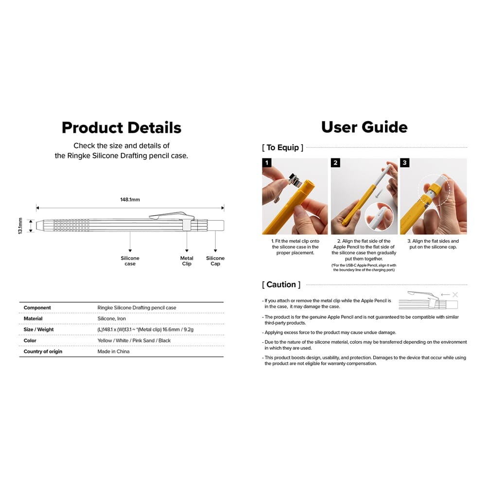 Ringke Apple Pencil รุ่นที่ 1 / 2 / Apple Pencil Pro / Apple Pencil USBC Type C Silicone Drafting Grip Holder Black / Yellow / White / Pink Sand Protector Cover Apple Pen Softcase Extra Comfort Handheld