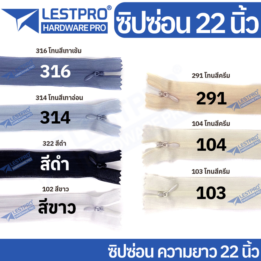 ซิปซ่อน 22 นิ้ว ซิปซ่อนถอดไม่ได้ LESTPROZIP022