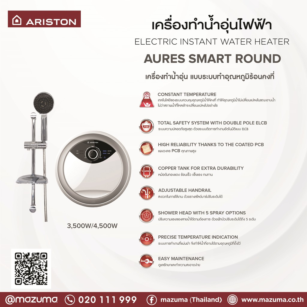 Ariston เครื่องทำน้ำอุ่น รุ่น Aures Smart Round RMC35E 3500 วัตต์