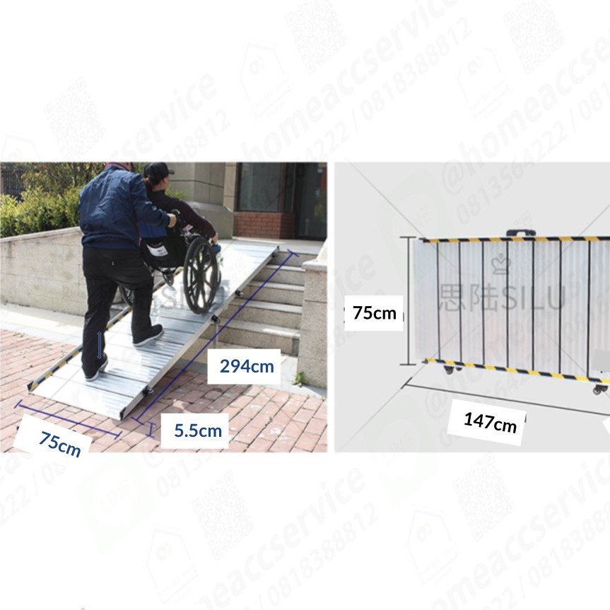 ทางลาด ทางลาดรถเข็น ทางลาดอลูมีเนียมรถเข็นแบบยาวพิเศษ ทางลาดรถเข็นผู้ป่วย - Extra Long Aluminum Ramp