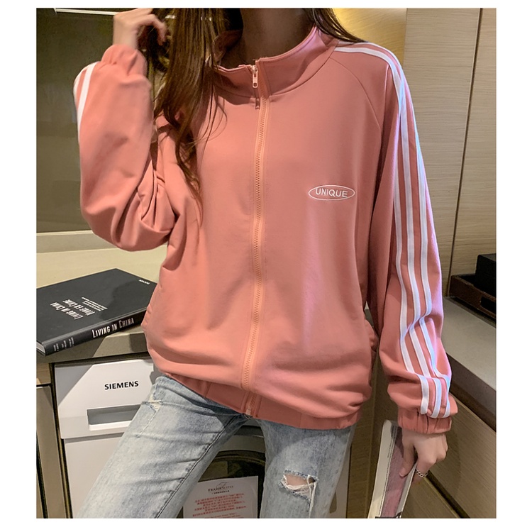 เสื้อแจ็คเก็ตแขนยาวผญลาย UNIQUE มีกระเป๋าและซิปหน้าเสื้อคลุม กันแดดกันลมร้อน กันหนาวผู้หญิง 3สี4ไซส์ M-XXL