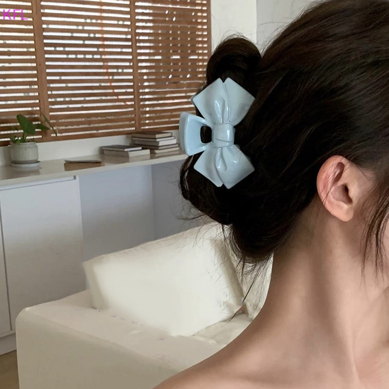 (KFL) ครีมหวาน Blue Bow Five-Pointed Star กิ๊บติดผมเรขาคณิตผม Claw สําหรับผู้หญิง Elegant Bowknot Crab Barrettes อุปกรณ์เสริมผมขายร้อน