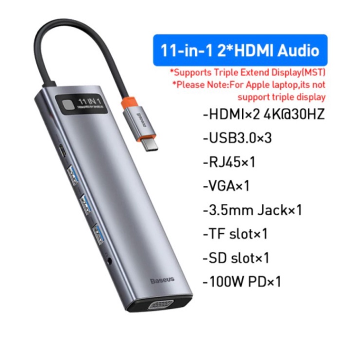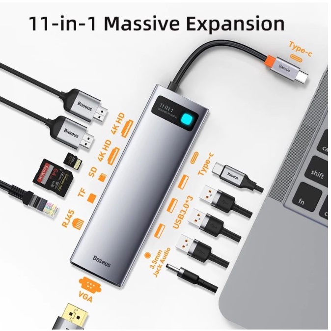 Baseus อะแดปเตอร์ Adapter 6in1 8in1 11in1 Type C HUB อะแดปเตอร์เสียง อุปกรณ์เสริมคอมพิวเตอร์ HUB