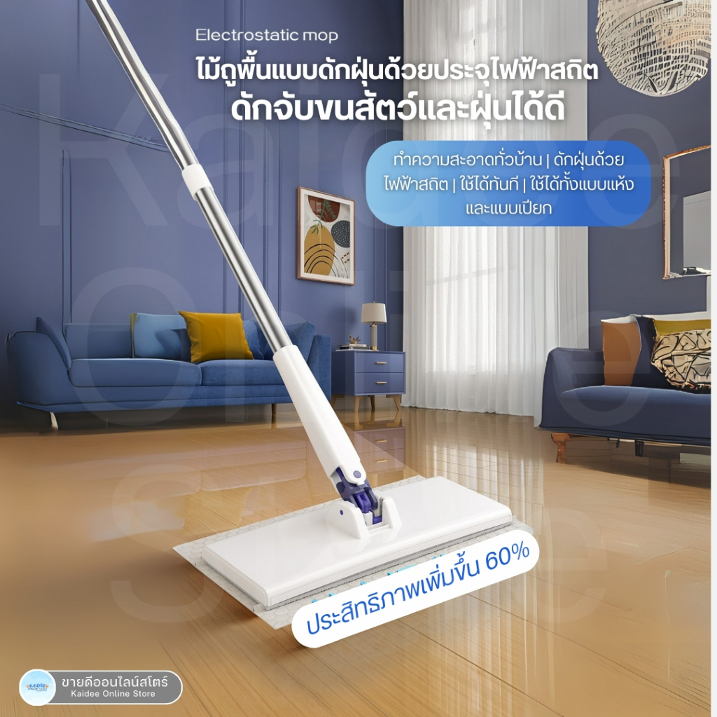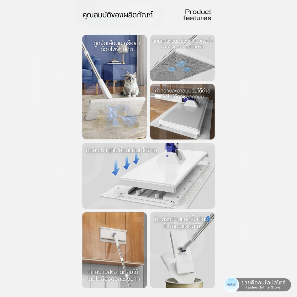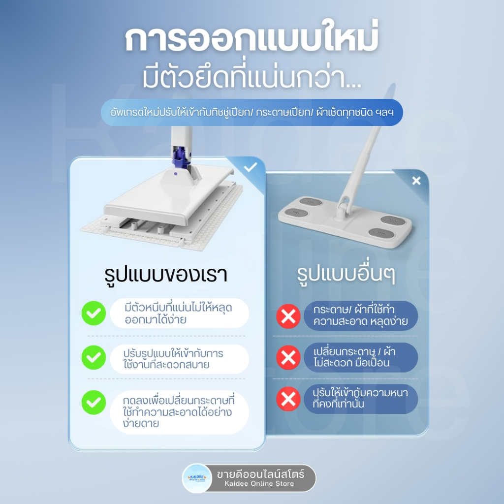 [พร้อมส่ง] ไม้ถูพื้นเอนกประสงค์ Flat Mop - ไม้ถูพื้นใช้แล้วทิ้ง แบบล็อกผ้า แผ่นเช็ดทำความสะอาด - ขายดีออนไลน์สโตร์
