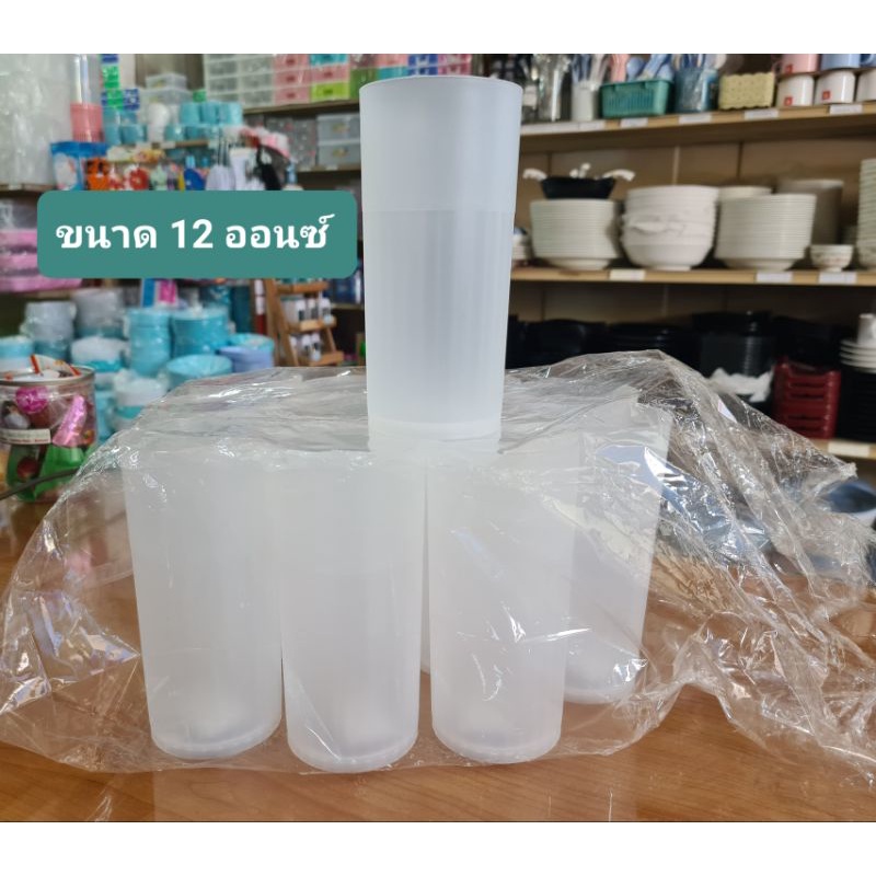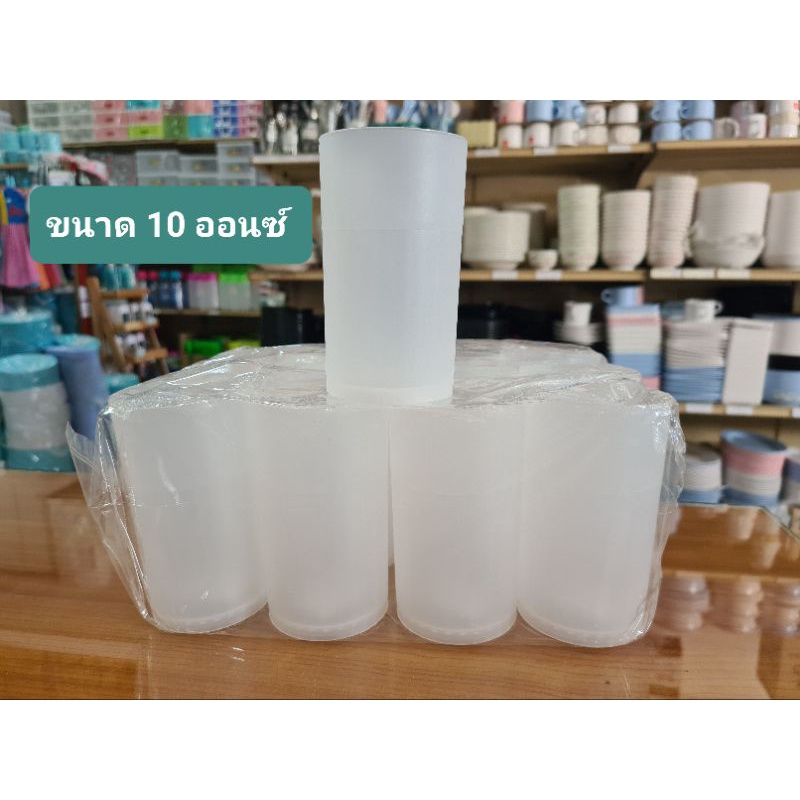 แก้วน้ำพลาสติก สีขาวขุ่น ทรงกระบอก ขนาด 10/12/13 ออนซ์