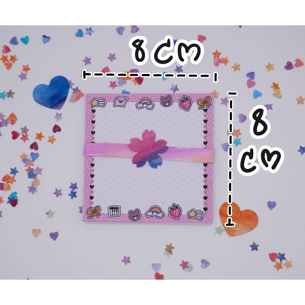 กระดาษโน้ตแฮนด์เมดไม่มีกาวในตัว แบบฉีกแบบแผ่น 8*8cm ใช้เองก็น่ารัก ใช้แถมจีบลูกค้าก็ได้ แพ็คส่งให้น่ารักสุดๆ