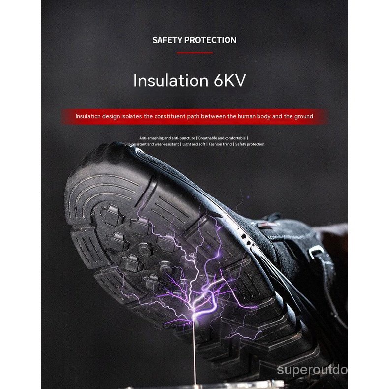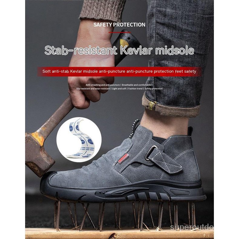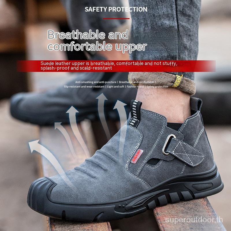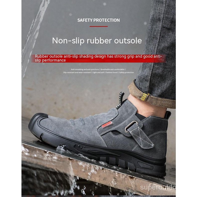 รองเท้าบูทเซฟตี้ หัวเหล็ก หนังวัว กันลื่น คุณภาพสูง เหมาะกับใส่ทํางานเชื่อม สําหรับผู้ชาย 0VTM
