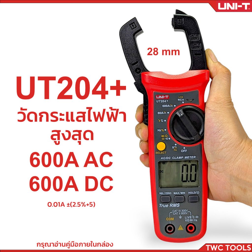 UNI-T UT204+ คลิปแอมป์ แคลมป์มิเตอร์ วัดไฟ กระแส ACDC 600A 600V กิ๊ปแอมป์ คีปแอมป์ Clamp Meter 204+