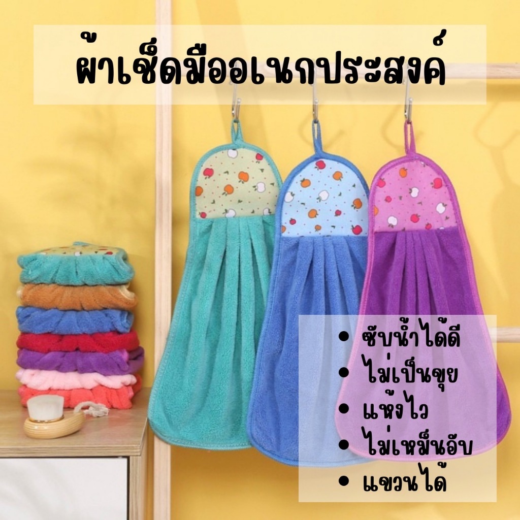 ผ้าเช็ดมือ ผ้าเช็ดมือแขวนได้ แห้งไว ไม่อับชื้น ผ้าเช็ดมืออเนกประสงค์