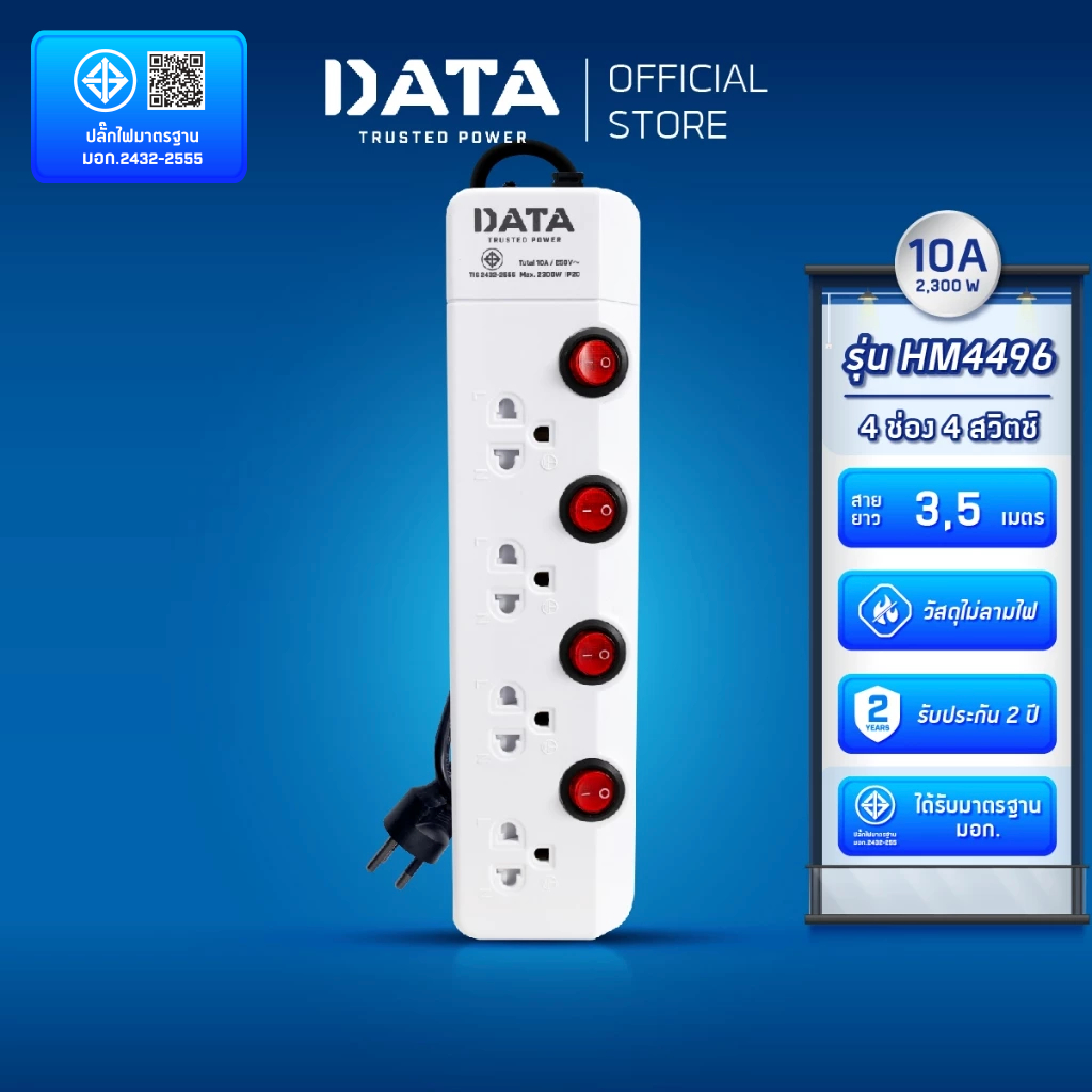 [ใช้โค๊ดลดเพิ่ม] DATA ปลั๊กไฟ ดาต้า 4 ช่อง 4 สวิตช์ สาย 3 5 เมตร รุ่น HM4496 ปลั้กพ่วง มาตรฐาน มอกแท้ รับประกัน 2 ปี