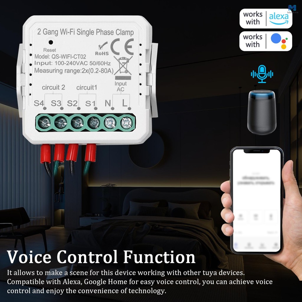 Tuya WiFi 2 Gang 80A Single Phase Clamp พลังงานแสงอาทิตย์ PV Bidirectional Two Way Energy Meter Mobilephone APP ควบคุม Current Transformer Schedule Timer Home Automation อุปกรณ์