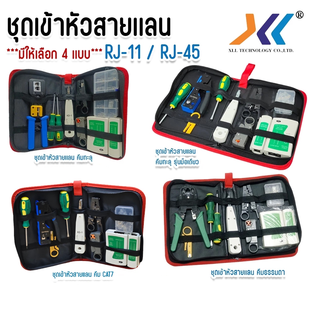 XLL ชุดเข้าหัวเเลน คีมเข้าหัวแลน คีม คีมย้ำหัว มีทั้งชุดคีมเข้าหัวเเลนธรรมดา คีมหัวเเลนทะลุ คีม CAT7