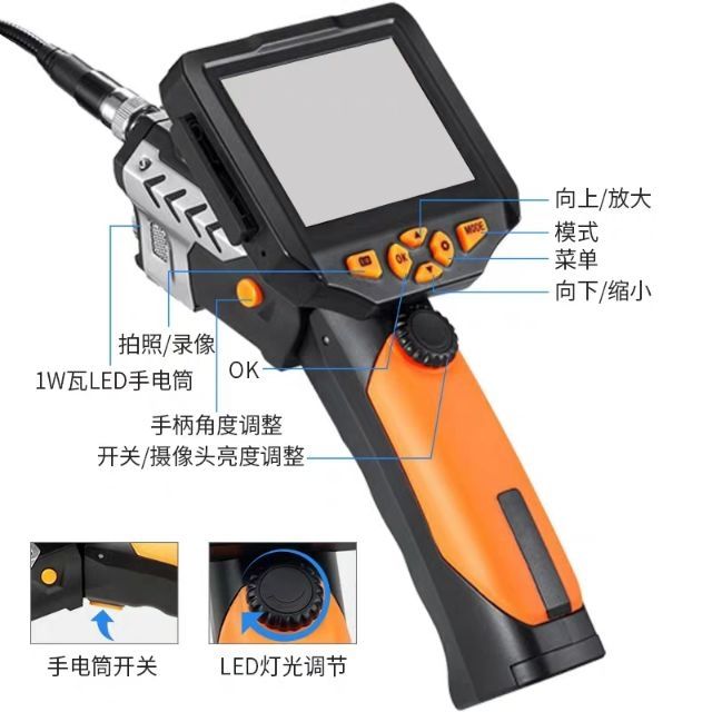 กล้องงูพร้อมจอ กล้องส่องที่แคบ กล้องส่องรู Inspection Camera HD