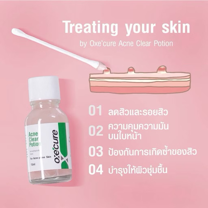 พร้อมส่ง💓| OxeCure Acne Clear Potion 15 ml. อ๊อกซีเคียว แป้งน้ำชมพูลดสิว ‼️แท้💯%‼️