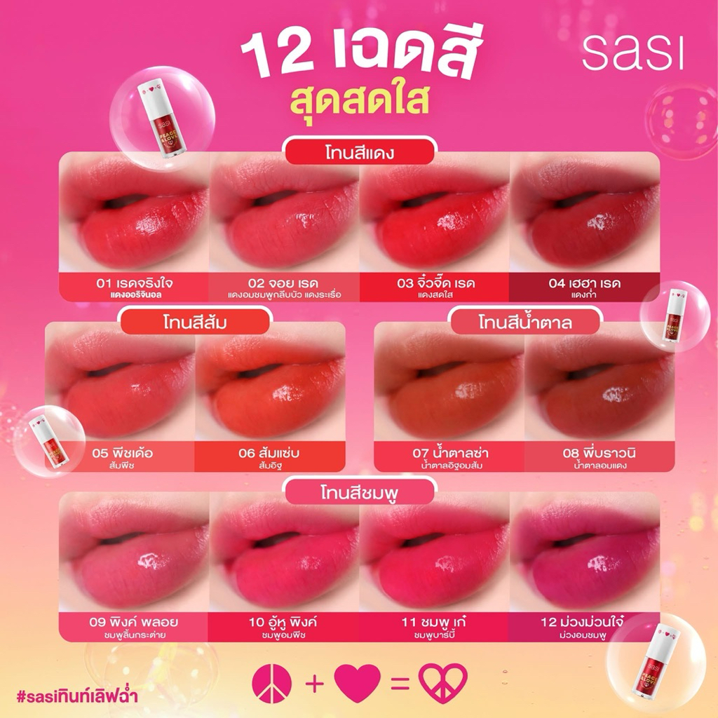 พร้อมส่ง💓| Sasi Peace & Love Watery Lip Tint ศศิ พีซ แอนด์ เลิฟ วอเตอร์รี่ ลิป ทินท์ 5 g. #เลิฟ