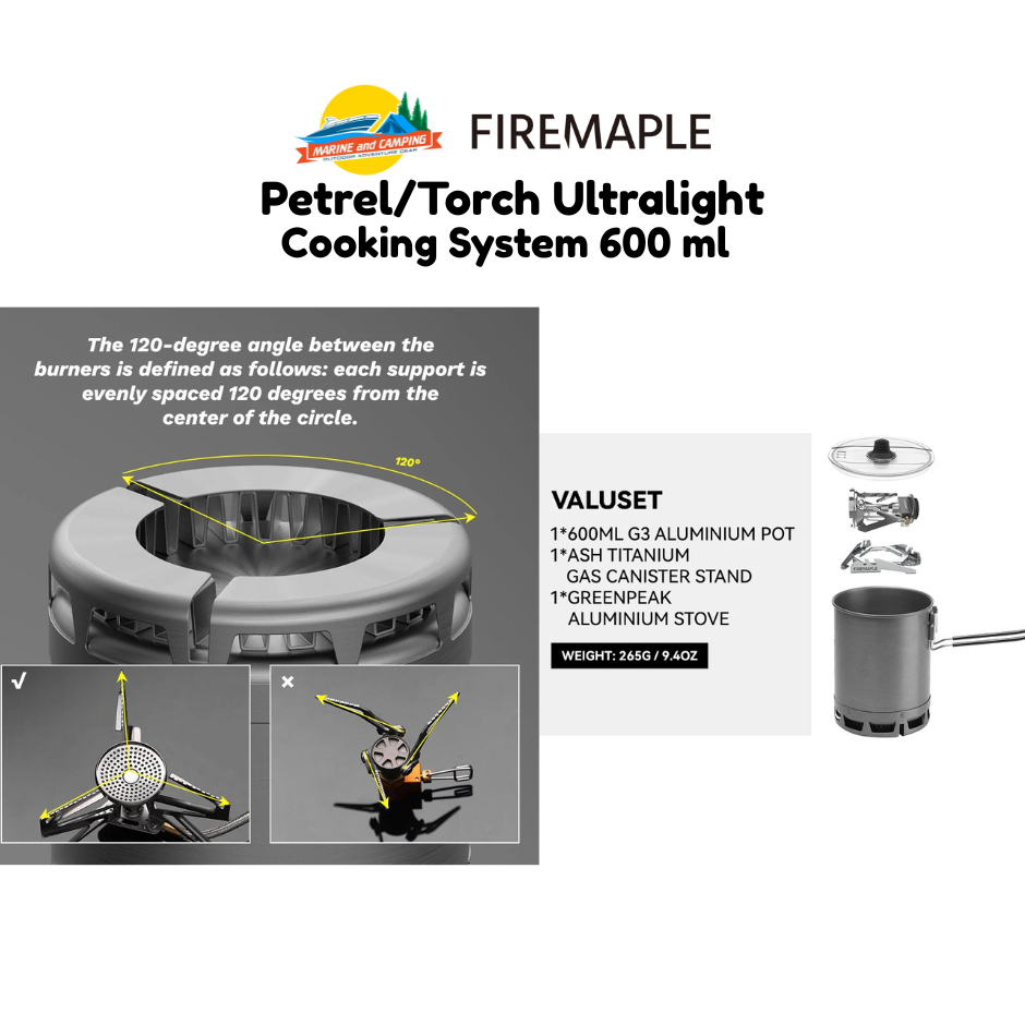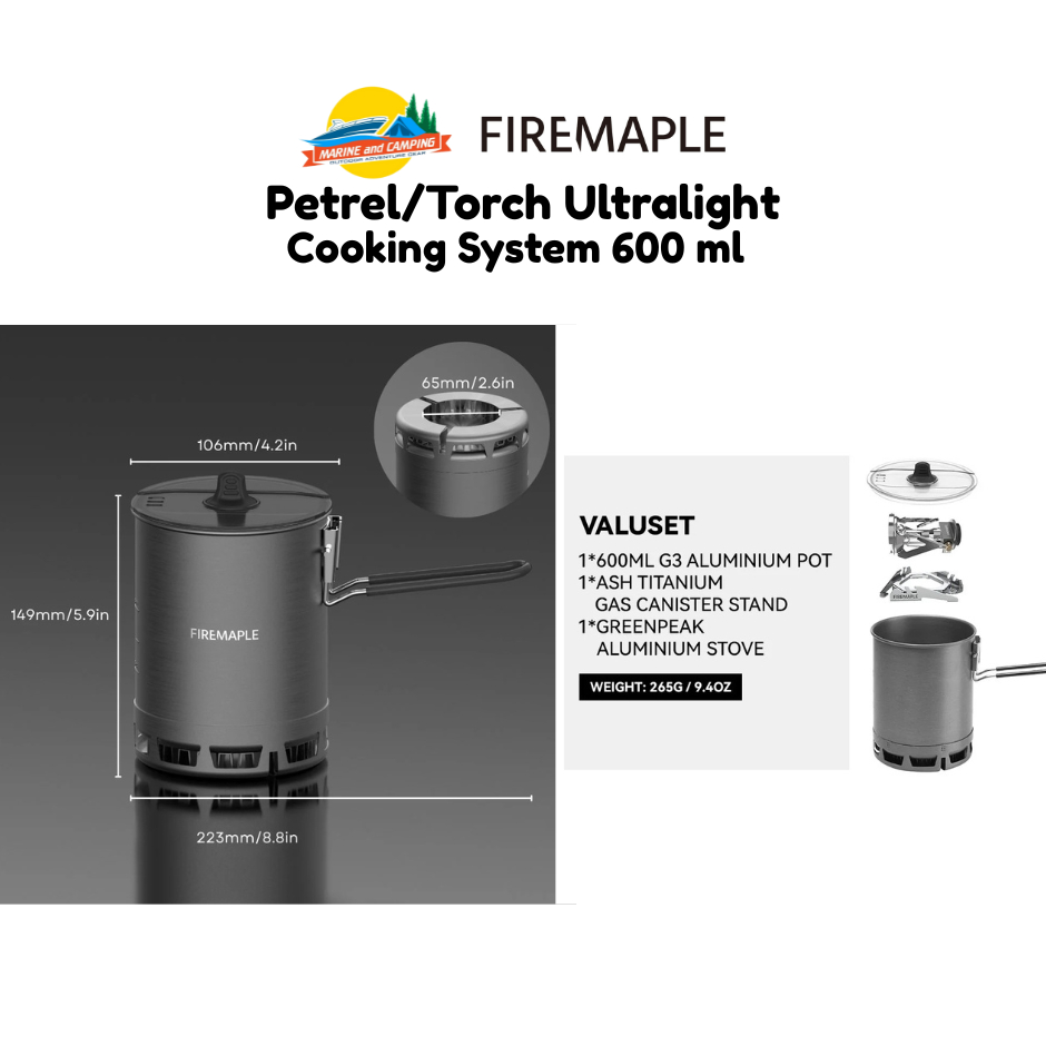 FireMaple Petrel/Torch Ultralight Cooking System 600 ml ชุดเตาพร้อมหม้อน้ำหนักเบา