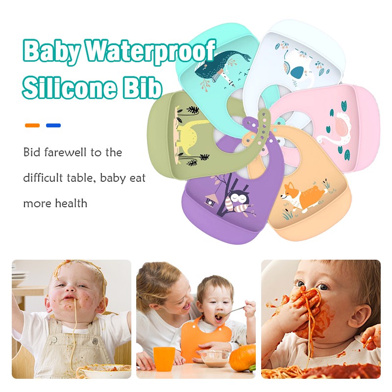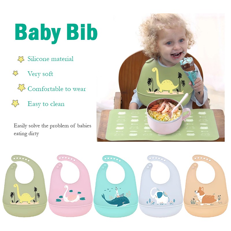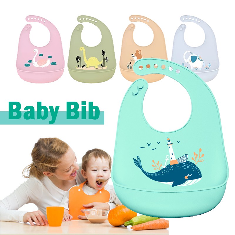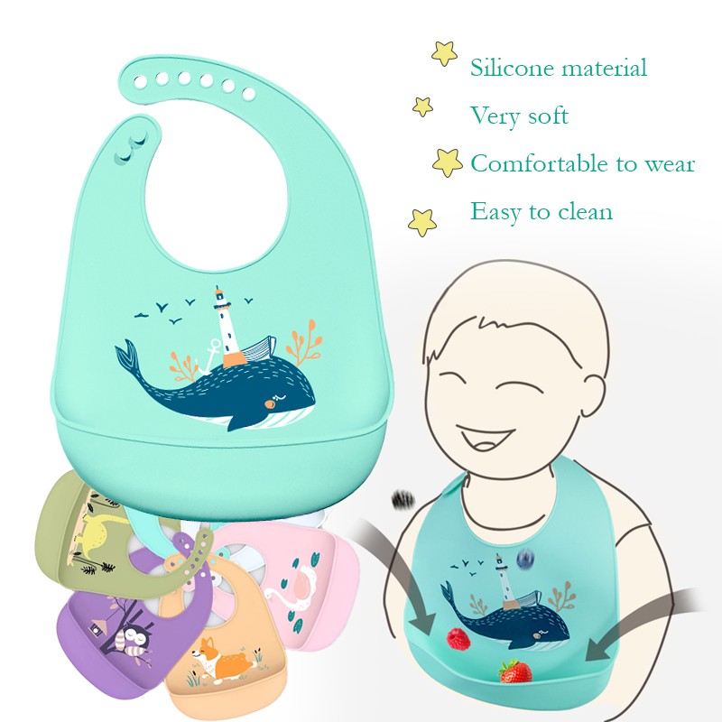ผ้ากันเปื้อนเด็ก ผ้ากันเปื้อนซิลิโคน สำหรับเด็กอายุ 0-4ขวบน่ารัก อุปกรณ์ทานอาหารเด็ก ซิลิโคนกันเปื้อนเด็ก