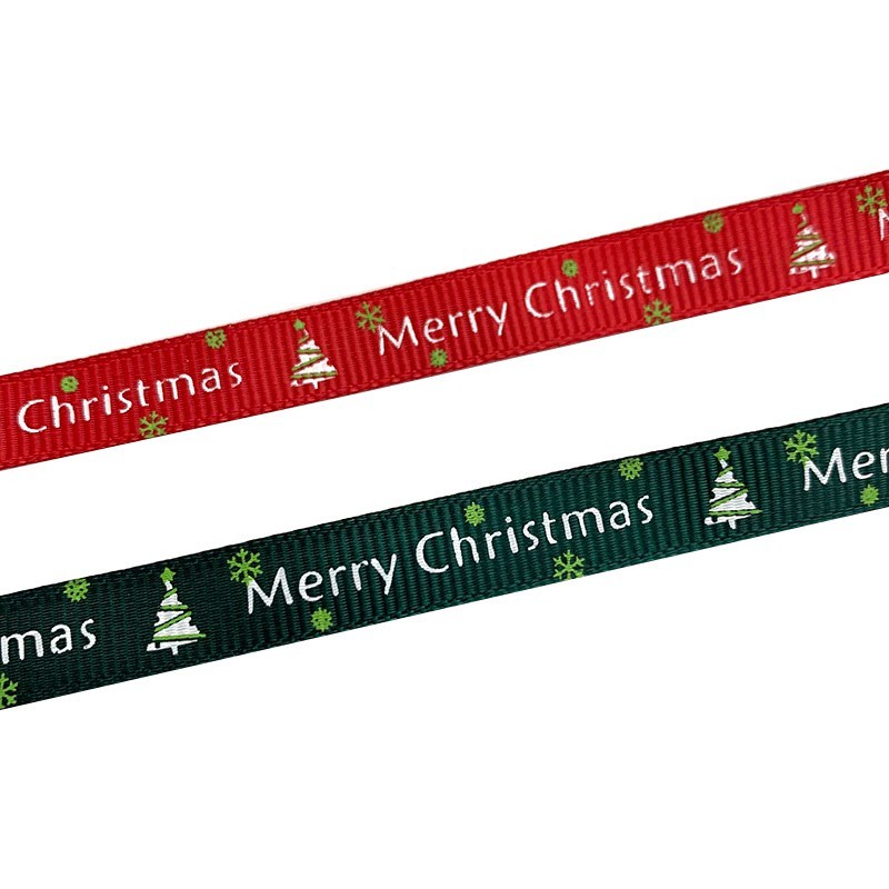 (5หลา/ล็อต) 3/8 (10มม.) ริบบิ้นกรอสเกรนสีแดงพิมพ์สุขสันต์วันคริสต์มาสซาตินริบบิ้นขายส่ง