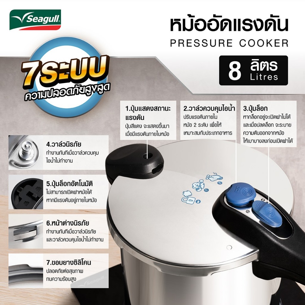Seagull หม้ออัดแรงดัน6และ8 ลิตร รุ่น150001250 รุ่น150001242