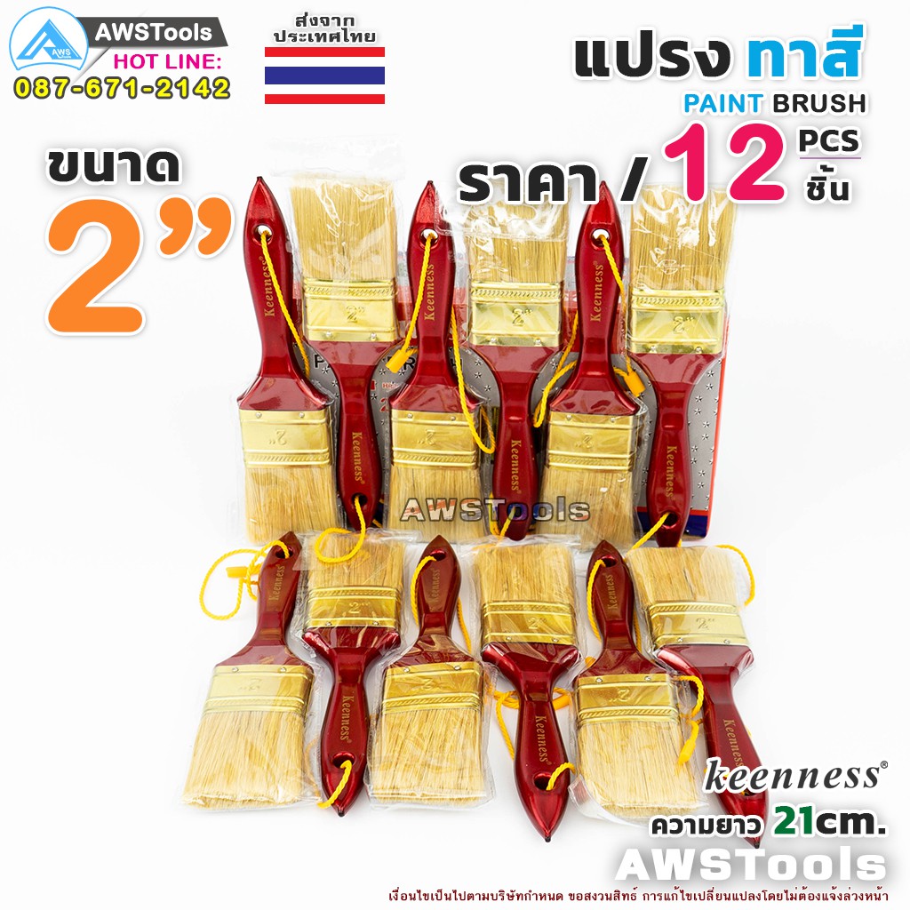12ชิ้น แปรงทาสี 2" (50 mm) Keenness แปรงทาสีบ้าน สีน้ำ สีน้ำมัน