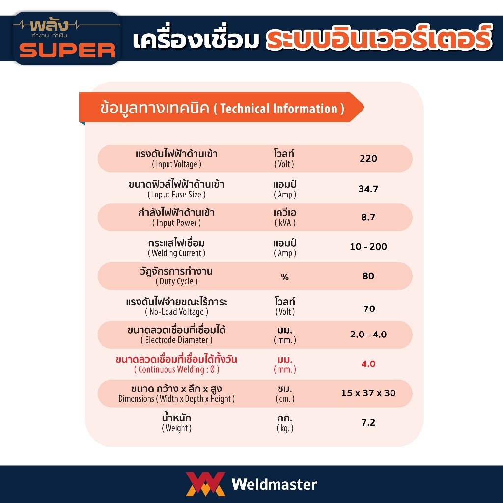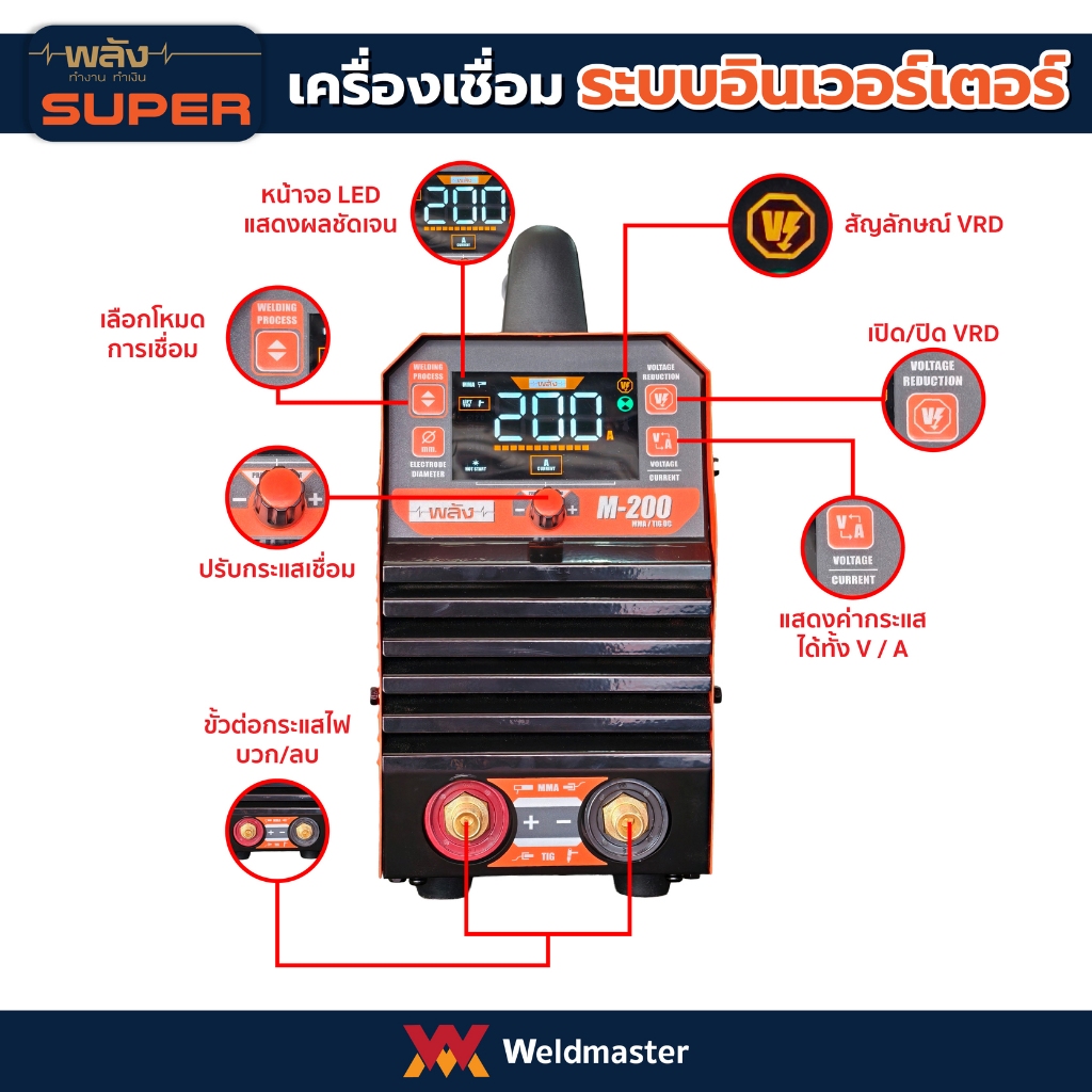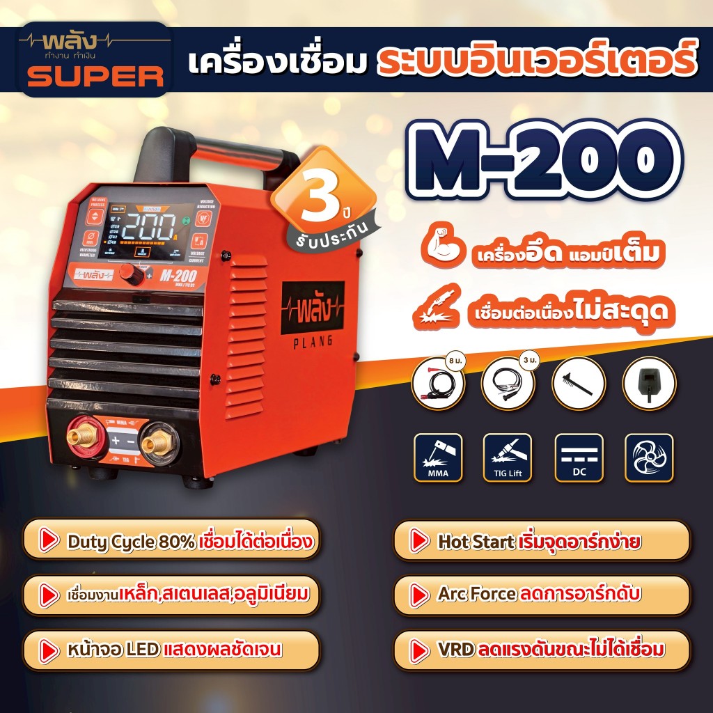 เครื่องเชื่อม ตู้เชื่อม อินเวอร์เตอร์ พลัง รุ่น M-200 ระบบMMA/TIG Scratch(ประกัน3ปี, พร้อมอุปกรณ์มาตรฐาน)