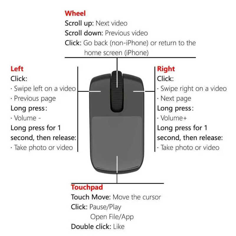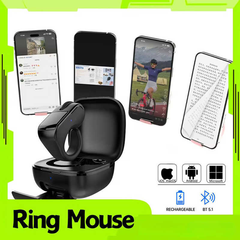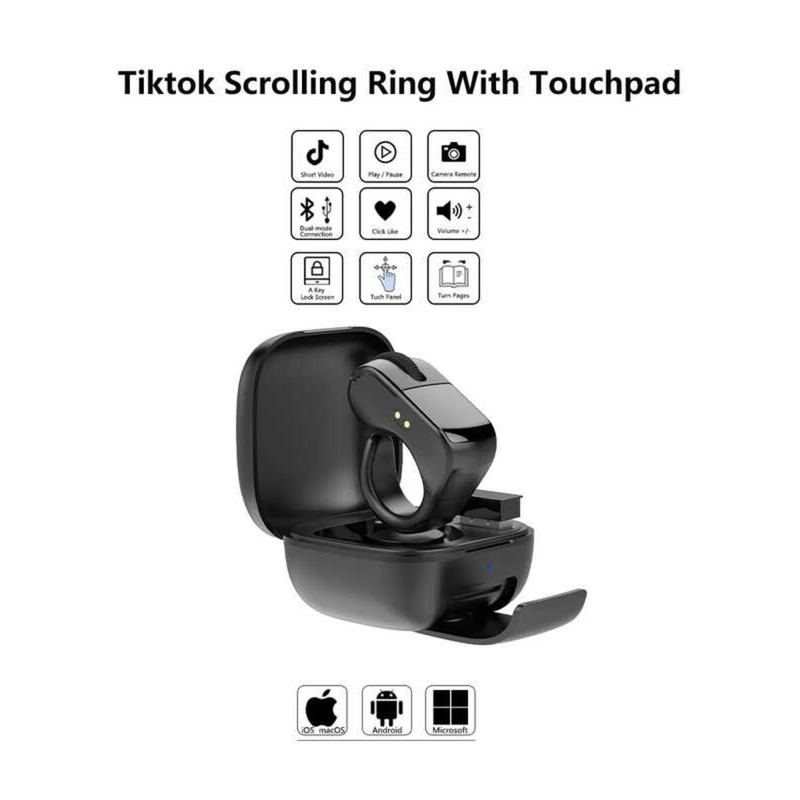 มินิแบบพกพาไร้สายบลูทูธแหวนนิ้วเมาส์สองโหมดรีโมทคอนโทรล Tiktok หน้าพลิกหนูพร้อมทัชแพดสําหรับขี้เกียจ