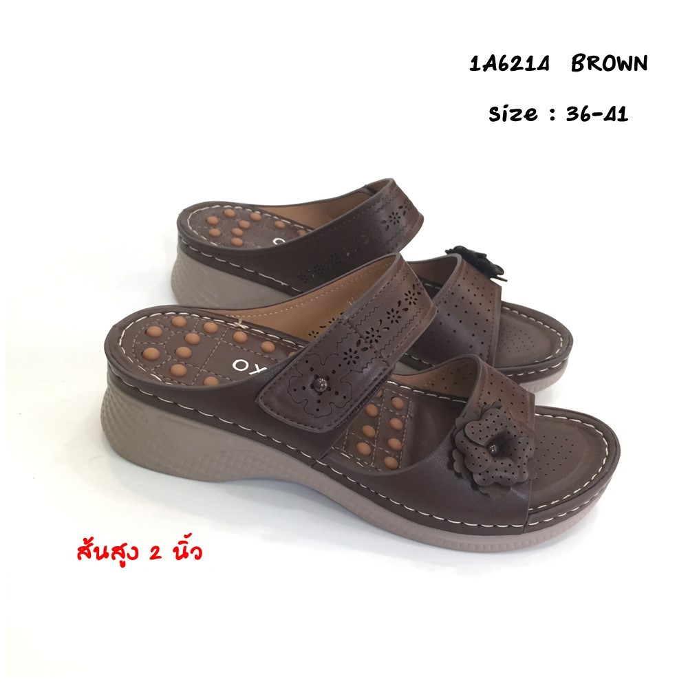 prettycomfort รองเท้าเพื่อสุขภาพ ส้นเตารีดแบบสวม งานเย็บมือทนทาน ส้นสูง1.8นี้ว สวมใส่สบาย 1A6214