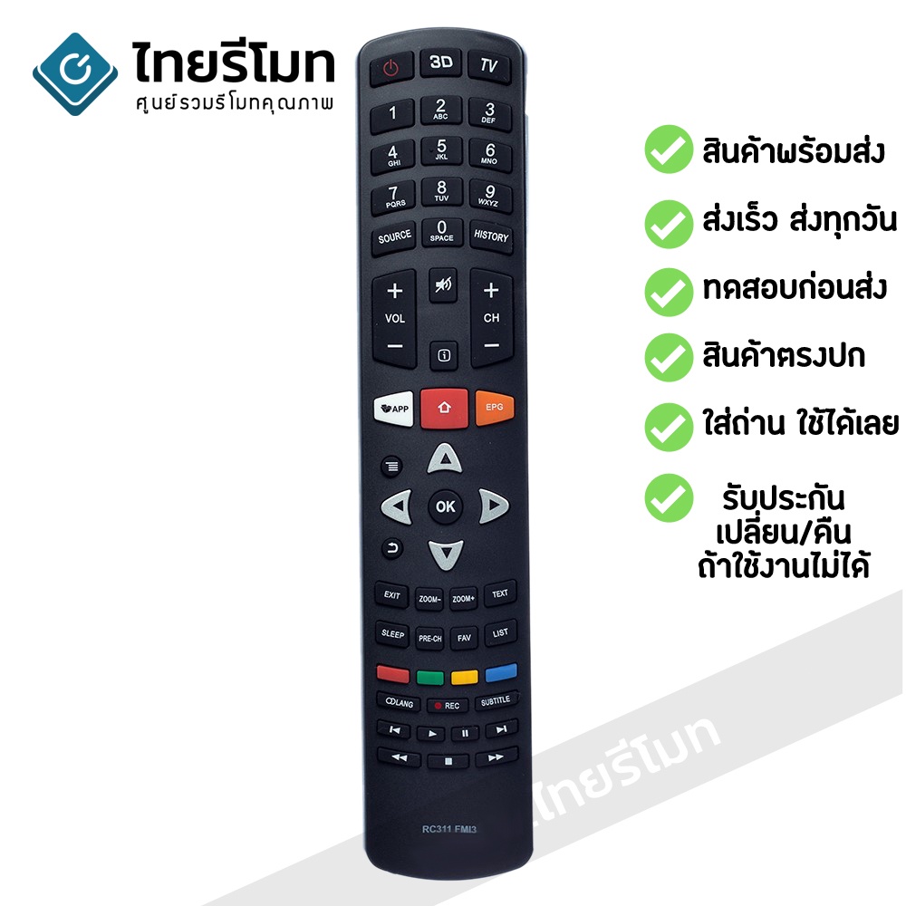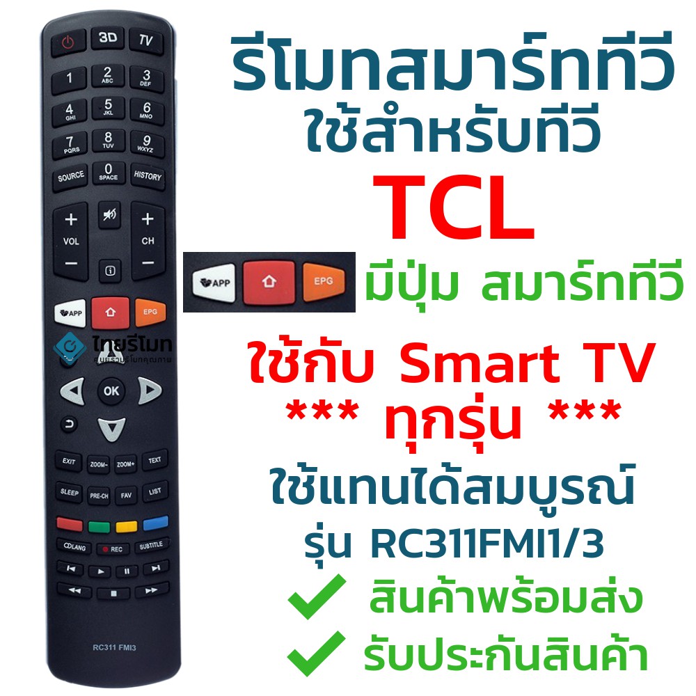 รีโมทสมาร์ททีวี ทีซีแอล TCL รุ่น RC311FMI3/RC311FMI1 รับประกันสินค้า มีเก็บเงินปลายทาง จัดส่งไว พร้อมส่ง l ไทยรีโมท
