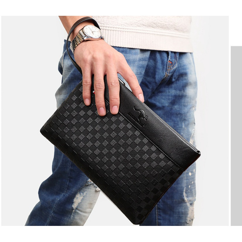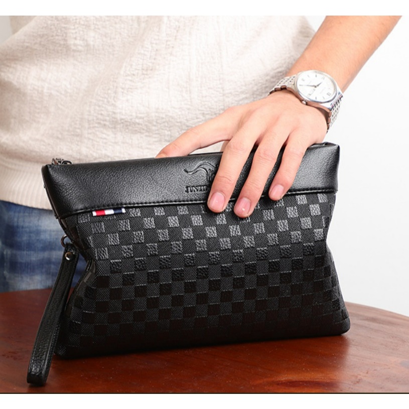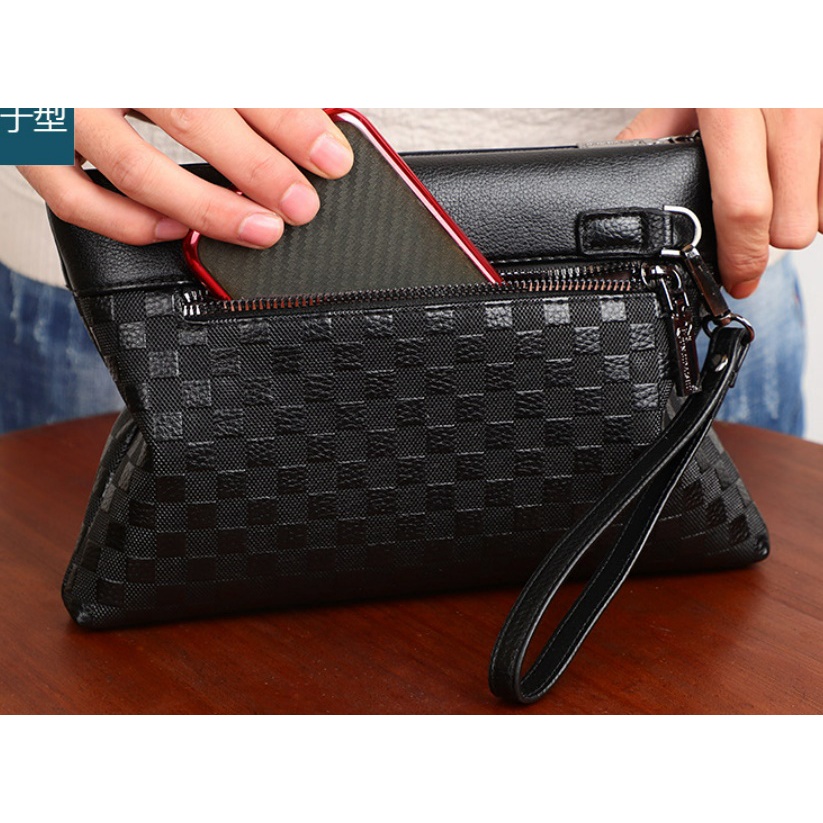 KA24 กระเป๋าถือ ผู้ชาย ผู้หญิง ใบกะทัดรัด สตางค์ คลัทช์ สายคล้องแขน หนัง PU