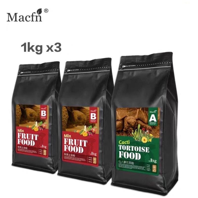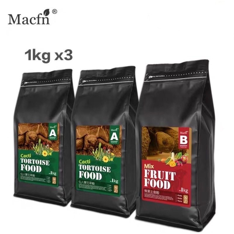 อาหารเต่าบก Macfn 2+1 สูตรกระบองเพชรCacti สูตรผลไม้รวมMix-Fruit 3 กิโลกรัม