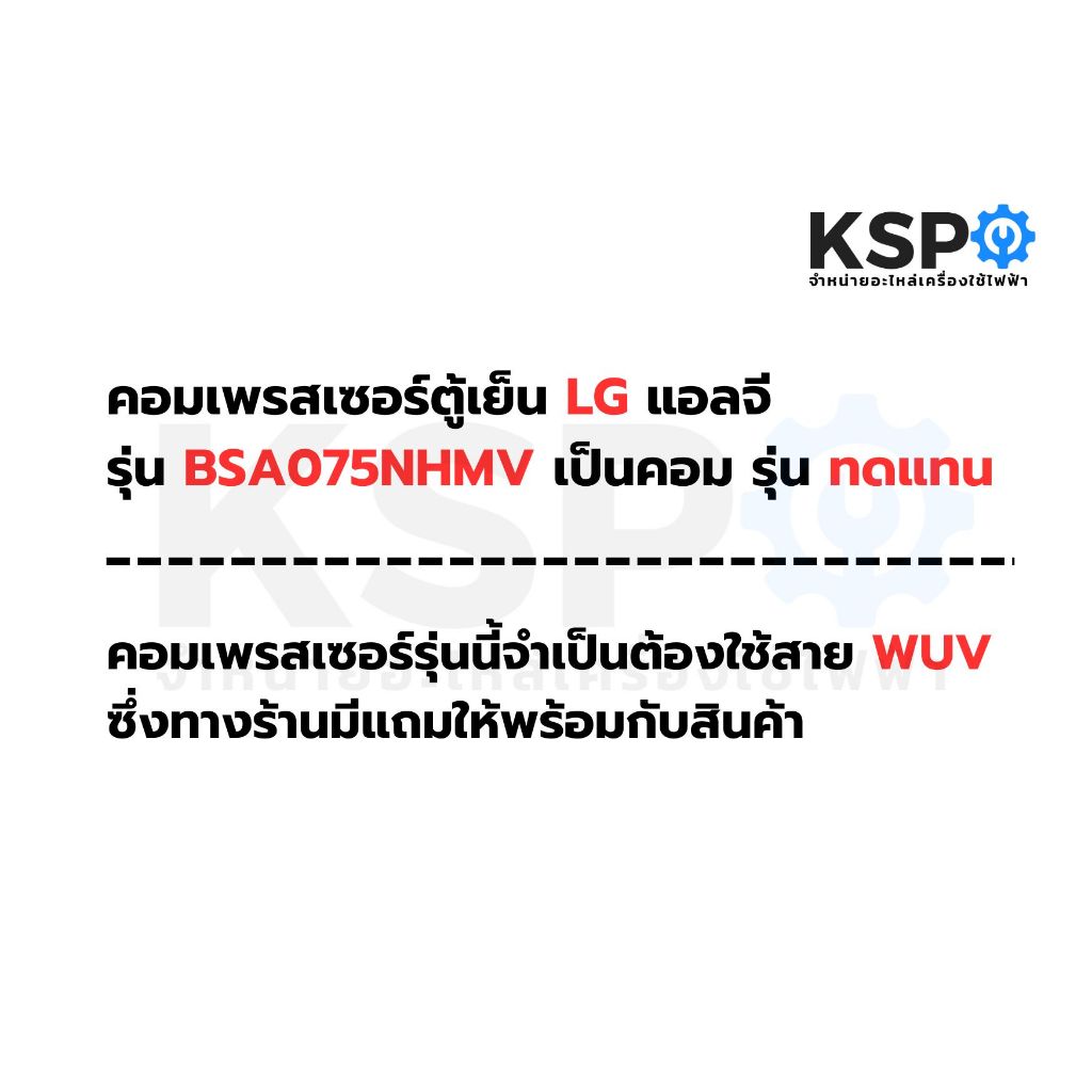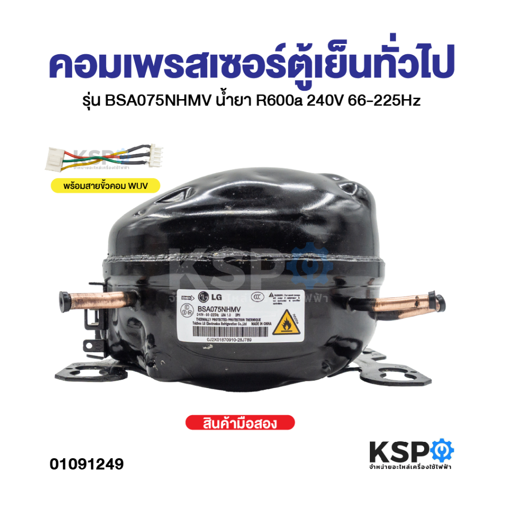คอมตู้เย็น คอมเพรสเซอร์ตู้เย็น LG แอลจี รุ่น BSA075NHMV น้ำยา R600a 240V 66-225Hz เทียบใช้ (พร้อมสายสลับ) อะไหล่ตู้เย็น