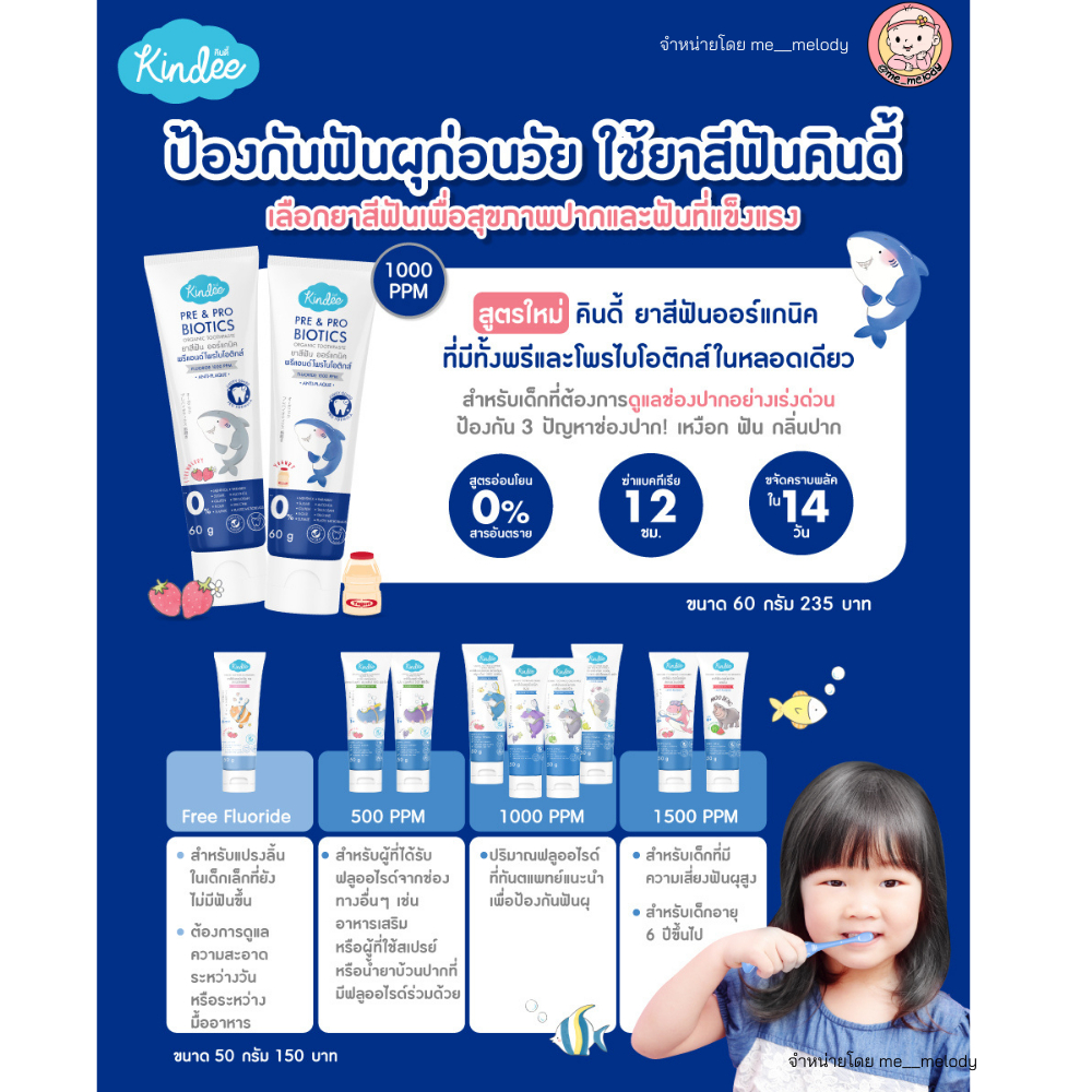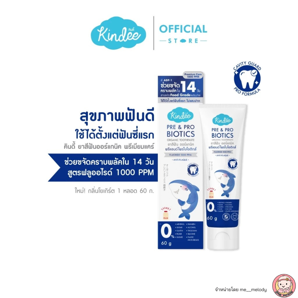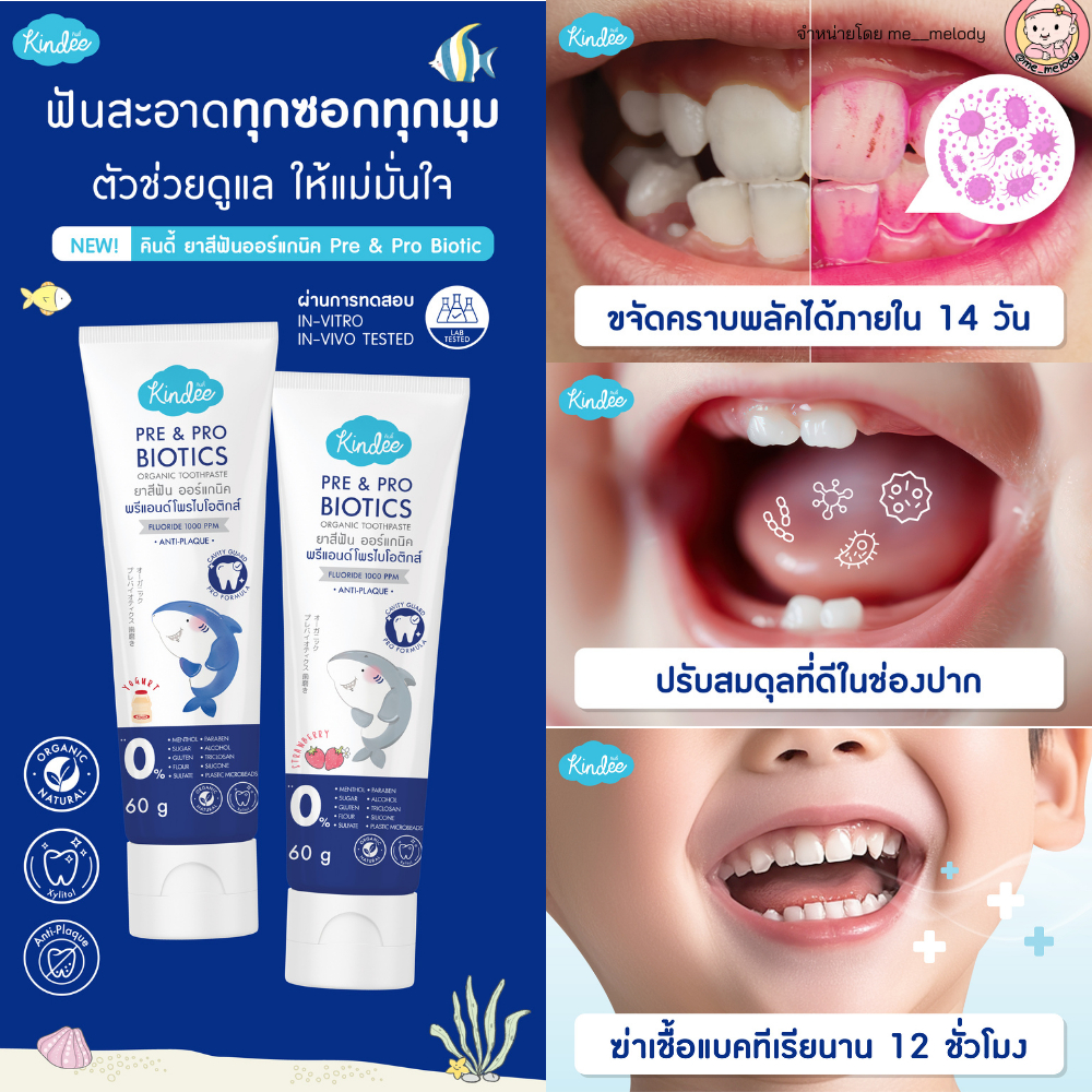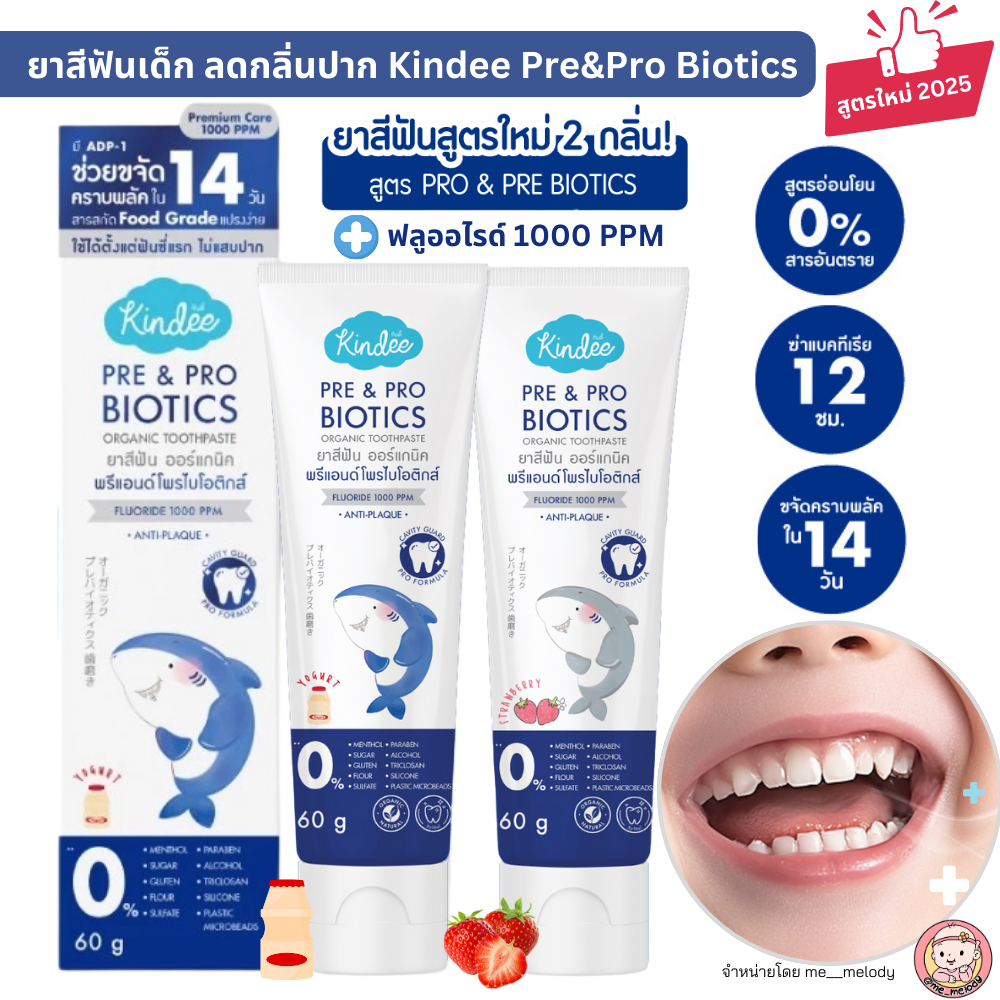 สูตรใหม่ 2025 ยาสีฟันเด็ก ลดกลิ่นปาก Kindee Pre&Pro Biotics ฟลูออไรด์ 1000 PPM