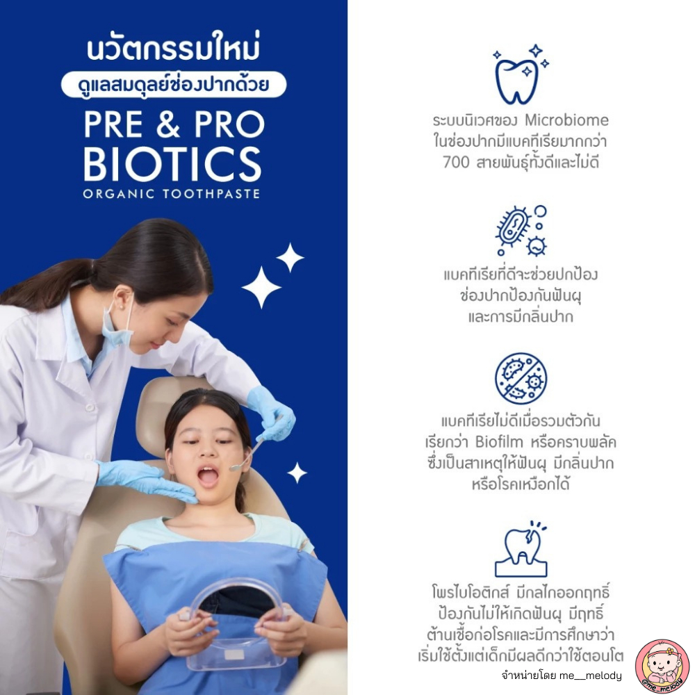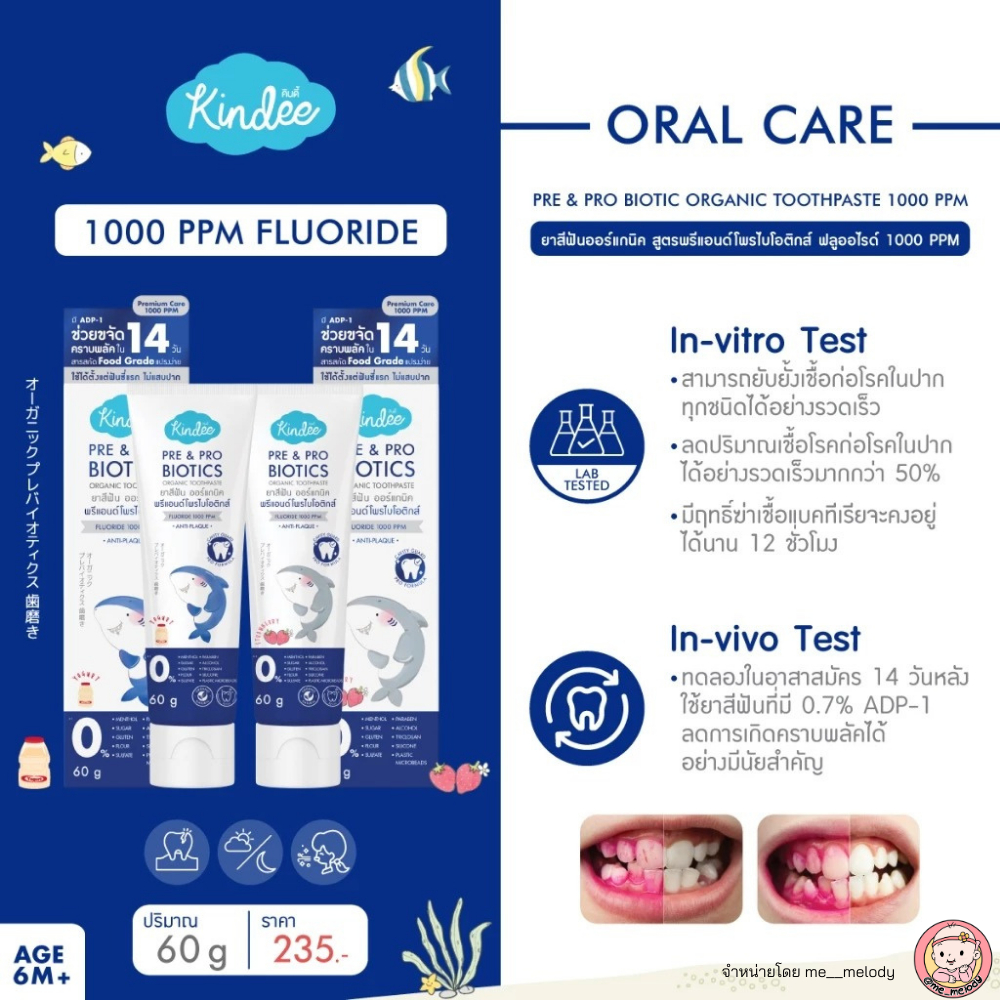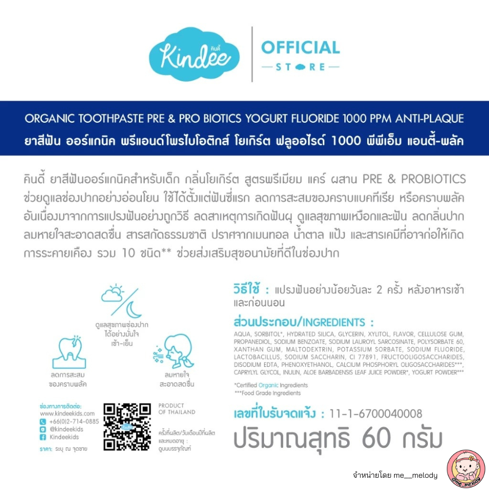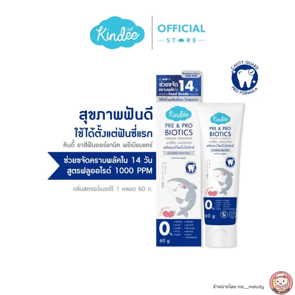 สูตรใหม่ 2025 ยาสีฟันเด็ก ลดกลิ่นปาก Kindee Pre&Pro Biotics ฟลูออไรด์ 1000 PPM