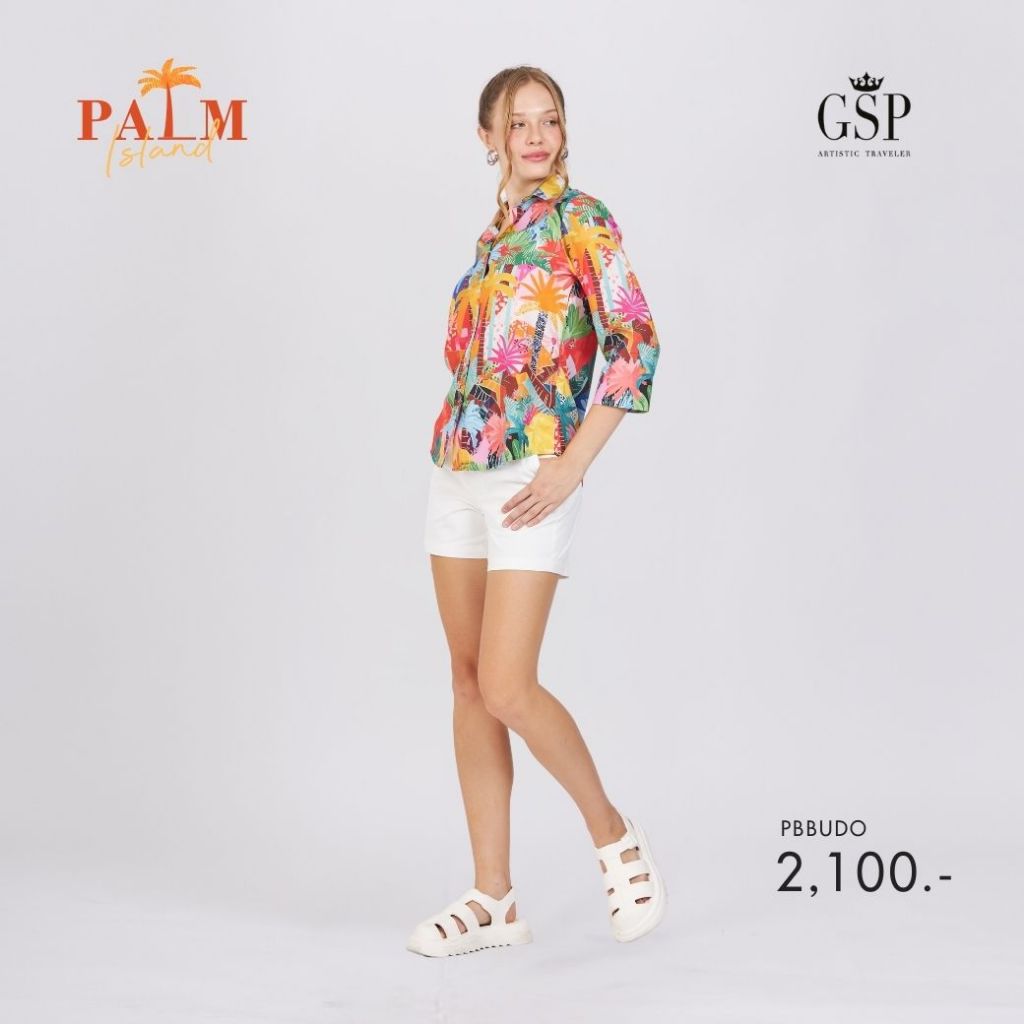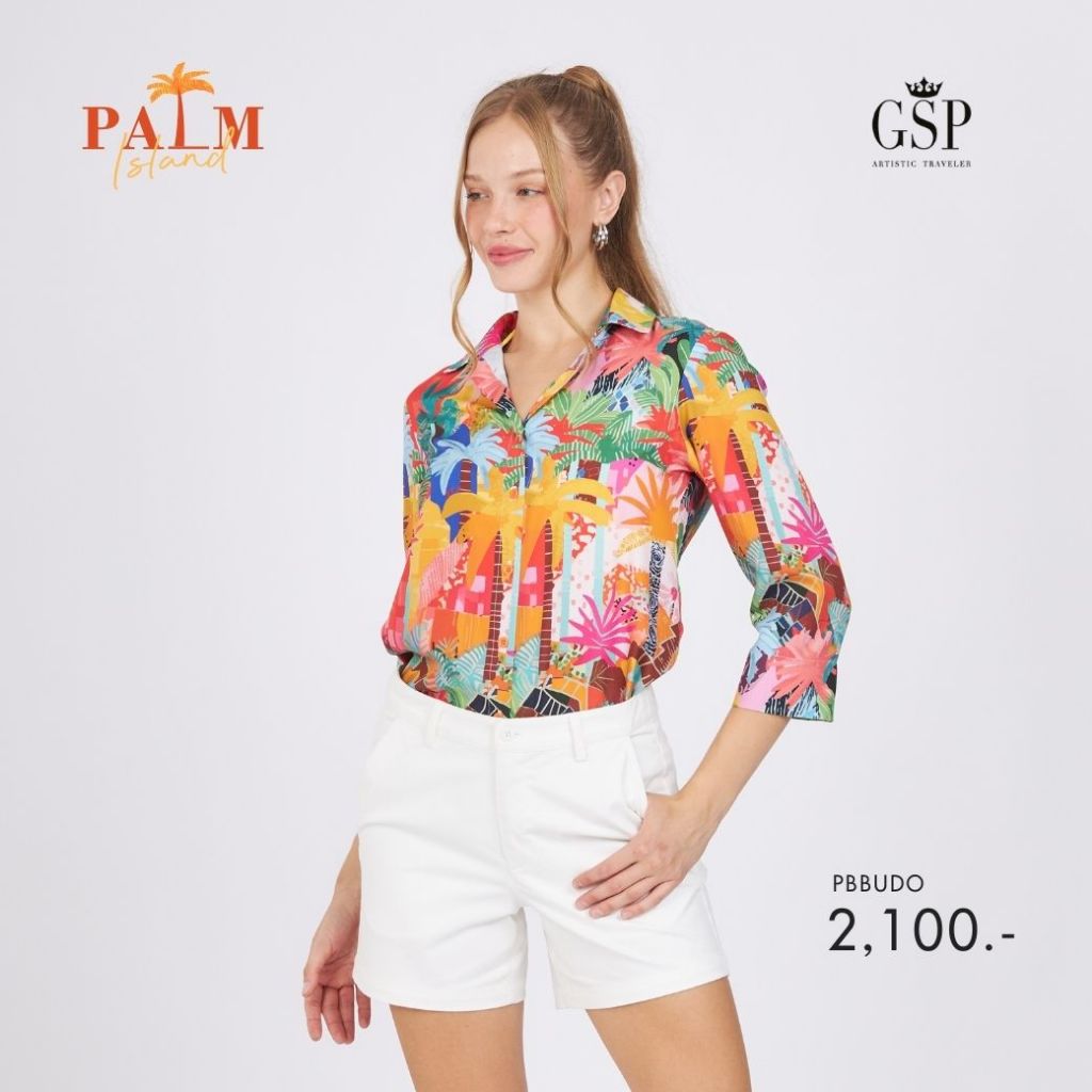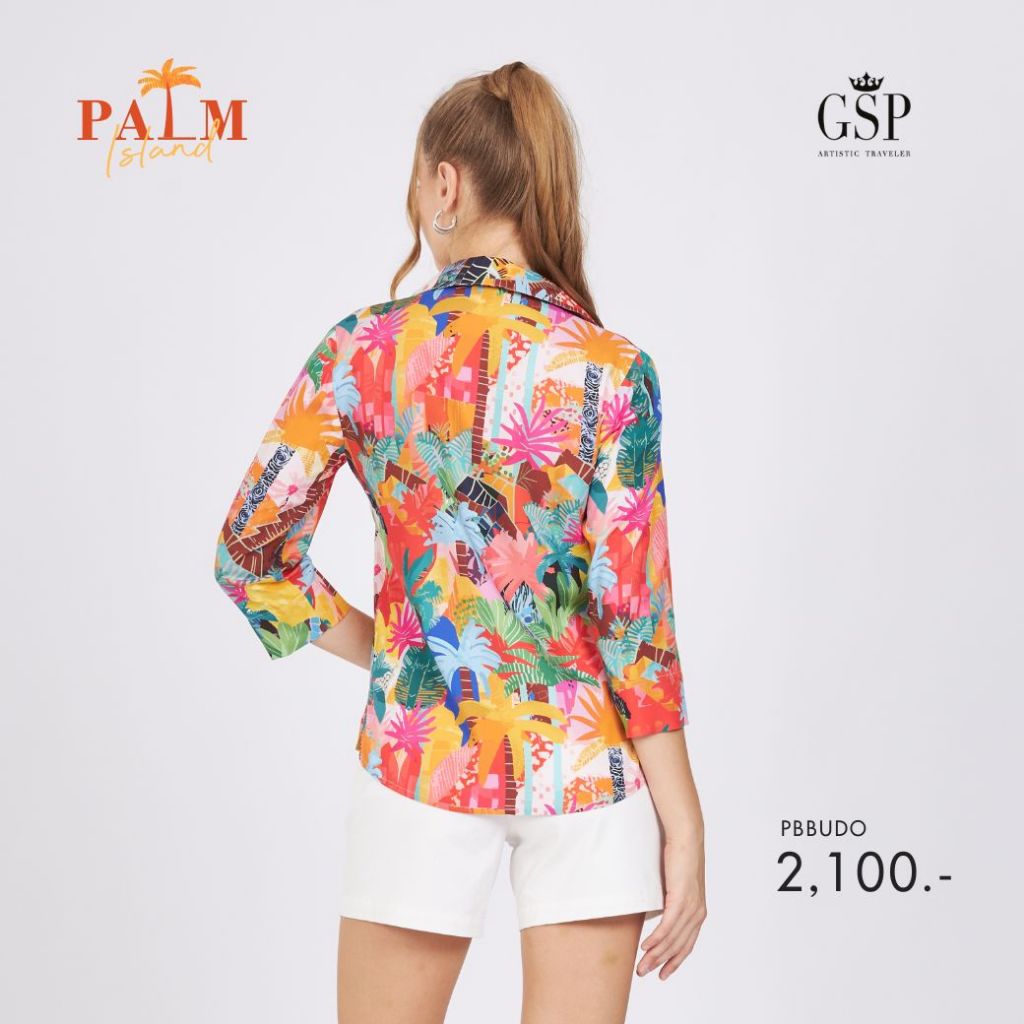 GSP Woman's shirt Palm island เสื้อเชิ้ตผู้หญิง แขนยาว สีส้ม PBBUDO