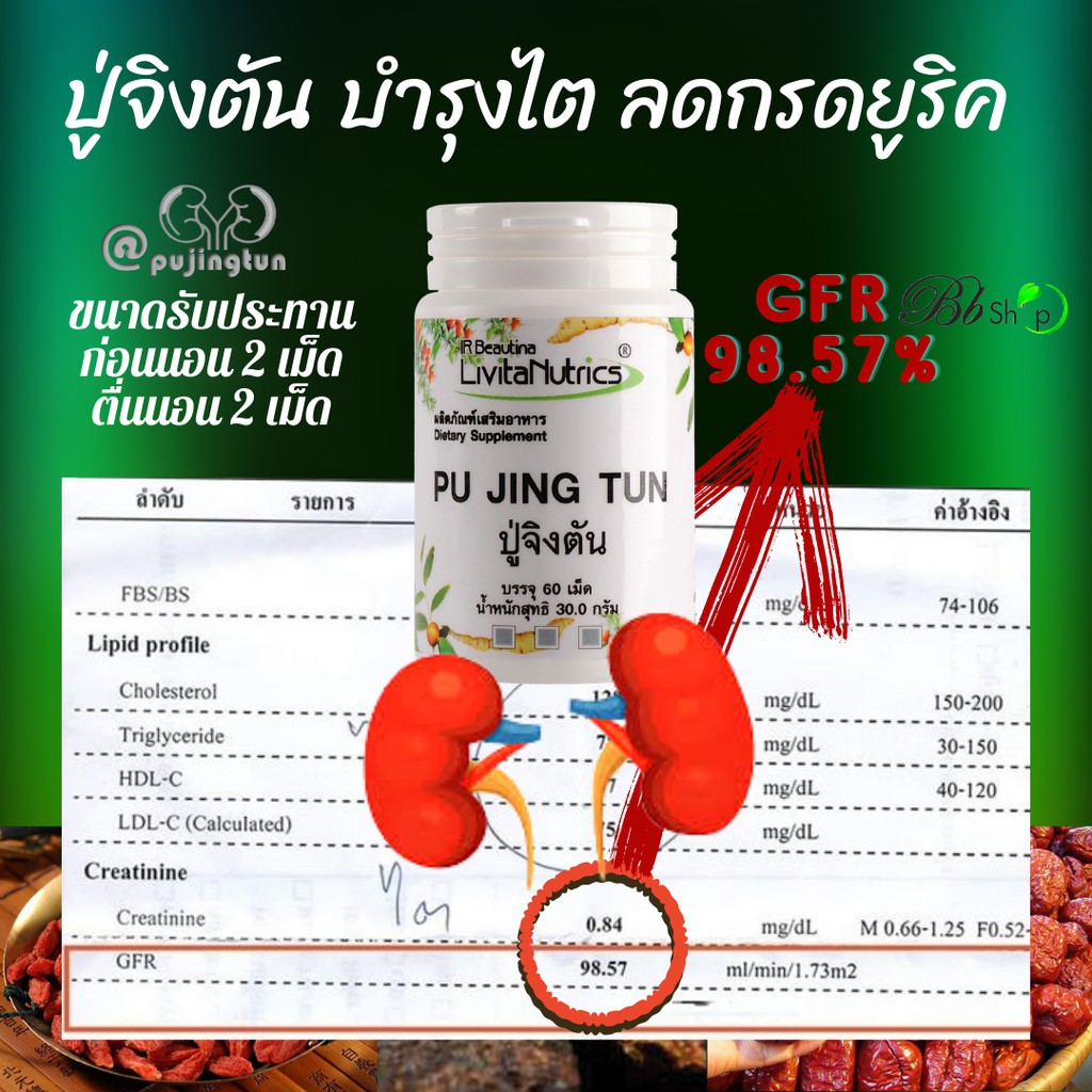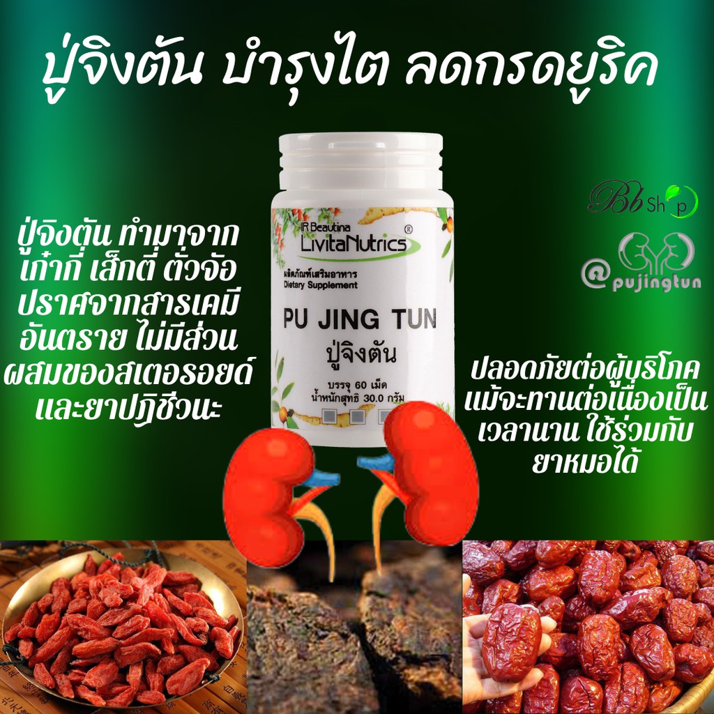 Bb ปู่จิงตัน ลดกรดยูริค โรคเก๊าต์ ฟื้นฟูภาวะไตเสื่อม ไตวาย ฟอกไต บำรุงไต PUJINGTUN