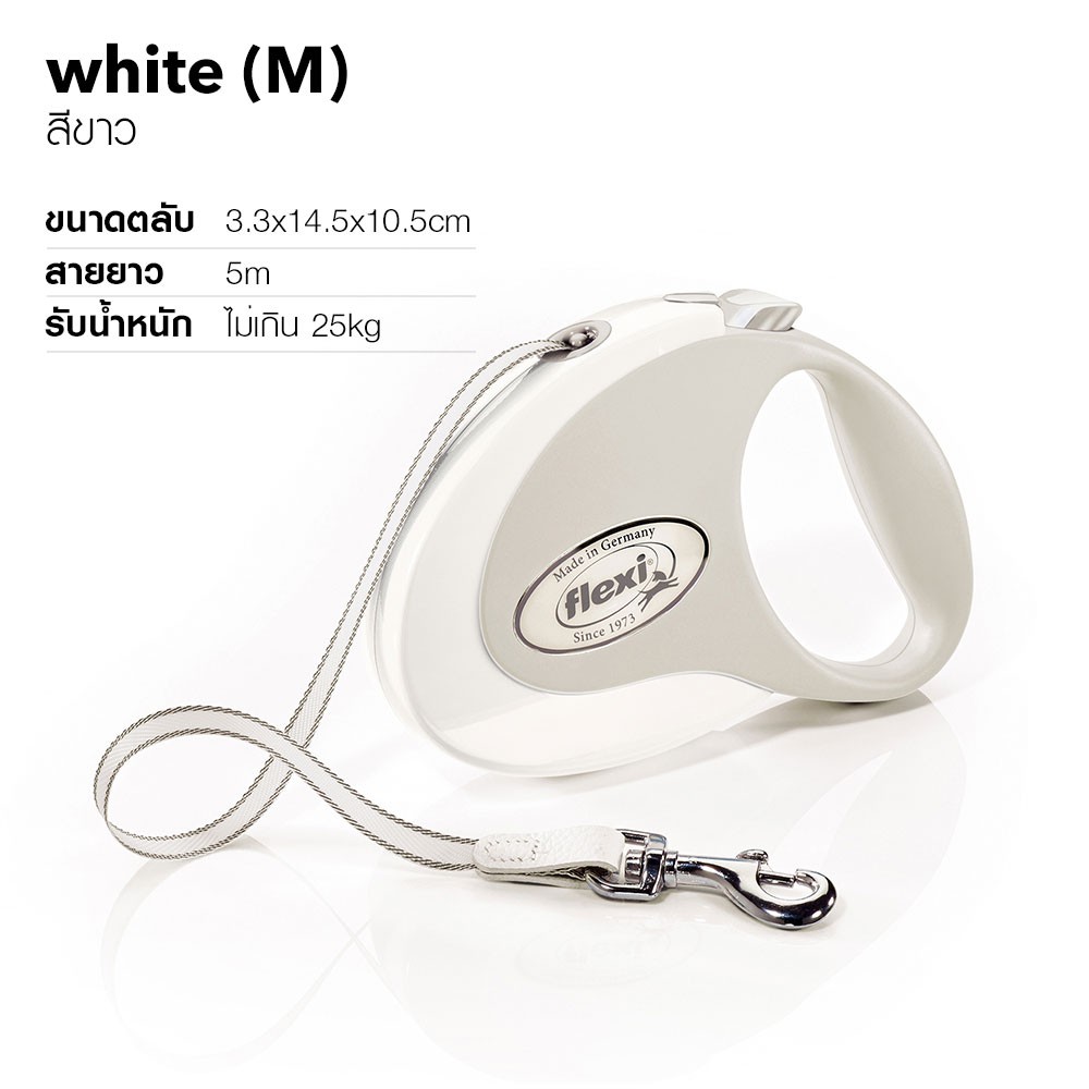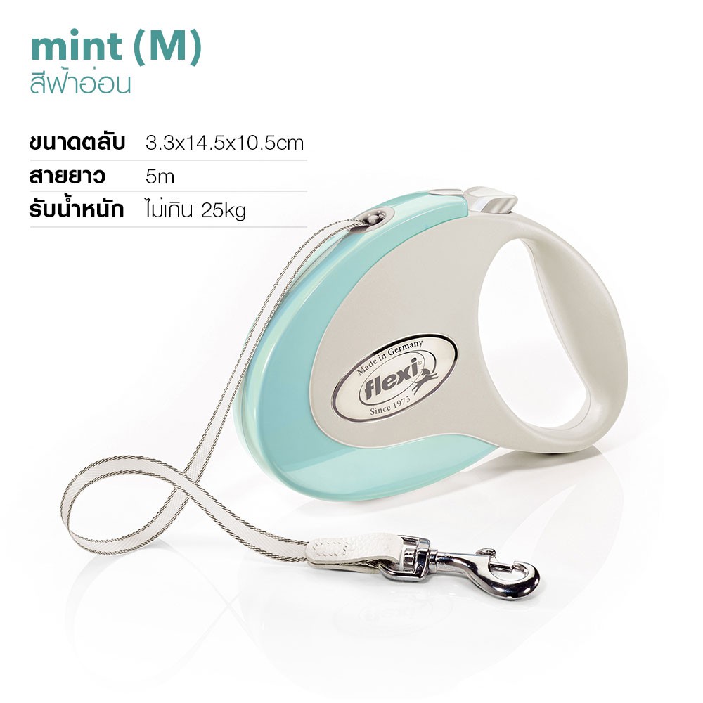 Flexi Style M สายจูงสุนัขรุ่น Style สีพาสเทล สายจูงเป็นหนังม้วนเข้าตลับเทปพร้อมระบบเบรค (ยาว 5 เมตร,น้ำหนักไม่เกิน 25kg)