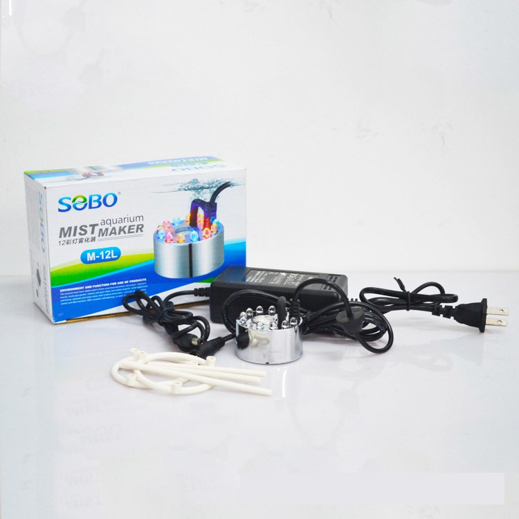 SOBO Aquarium Mist Maker เครื่องทำหมอก ตัวทำหมอก สำหรับตู้ปลา บ่อปลา น้ำตกน้ำพุ พร้อมไฟ LED ระบบUltrasonic ปลอดภัย M-12L