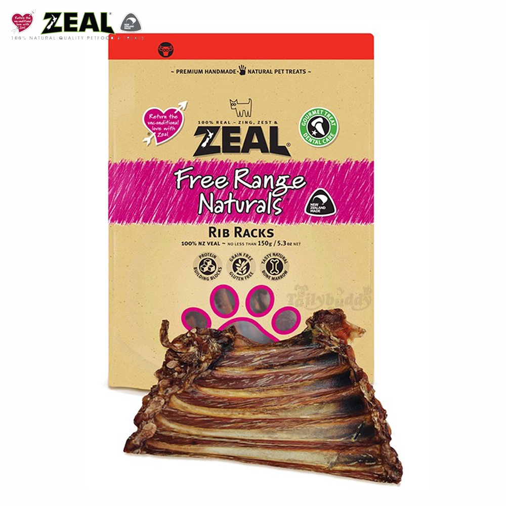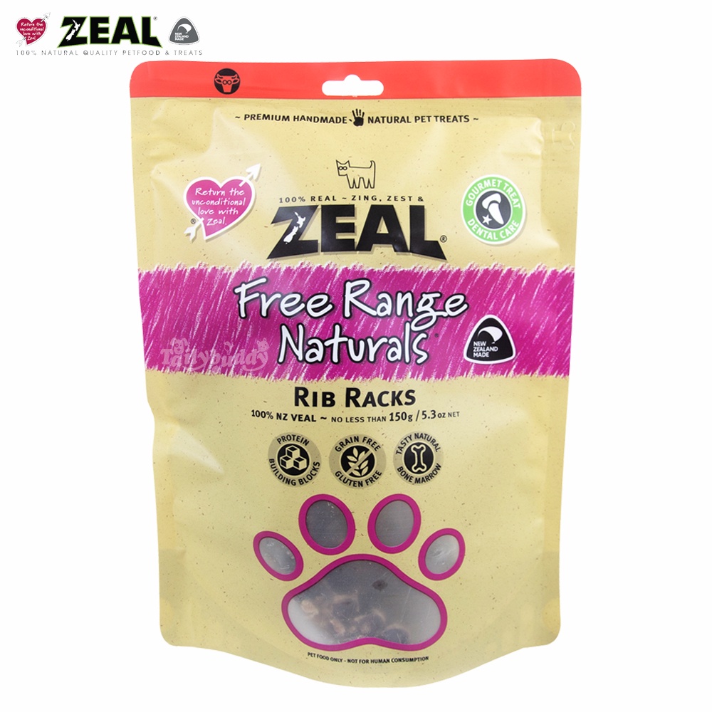 ZEAL Rib Racks (วัว) ซี่โครงลูกวัวนิวซีแลนด์ ซี่โครงเป็นแผง ให้โปรตีนและแคลเซียมสูง ขนมสุนัขแทะเล่น (150g)